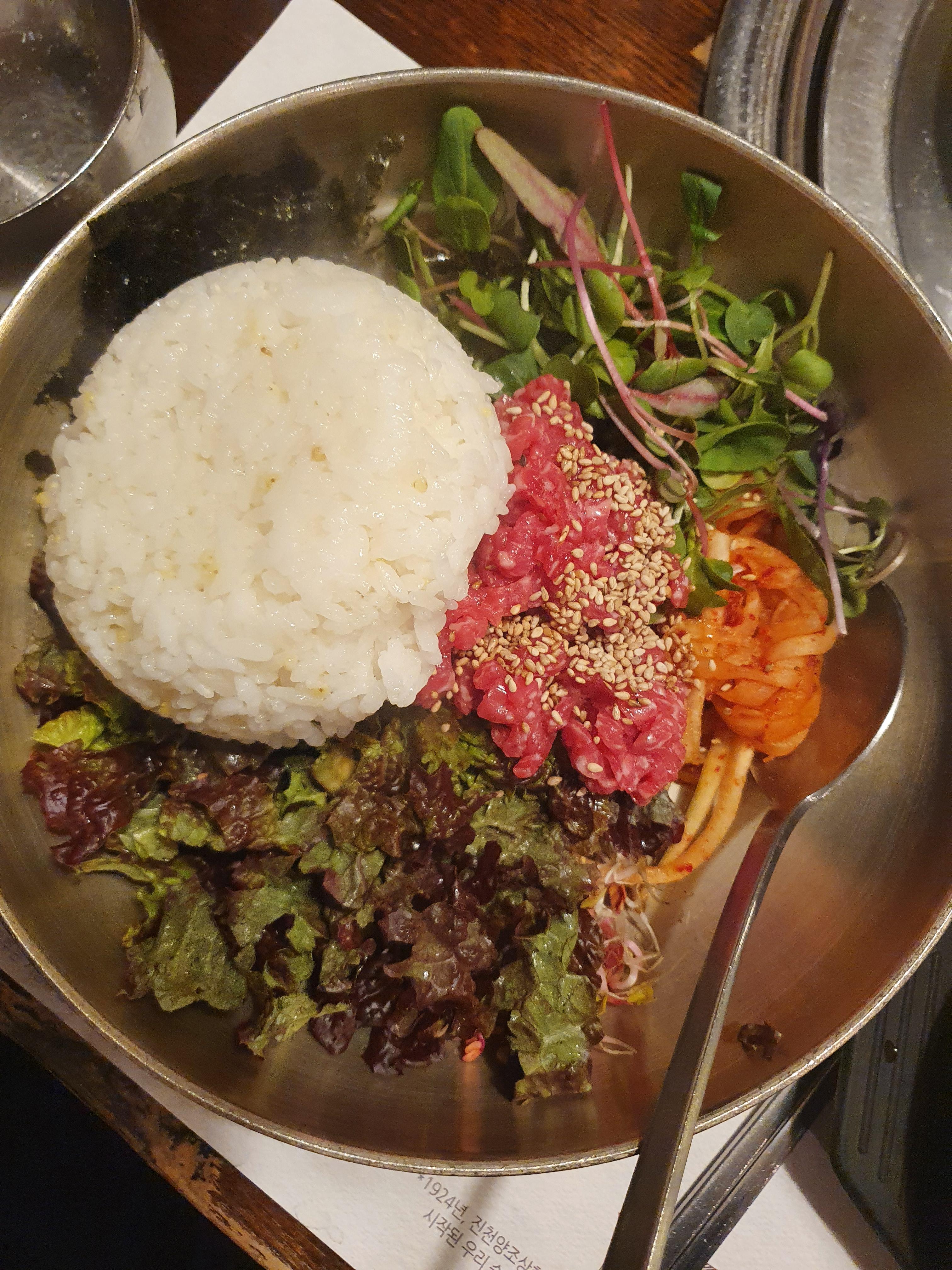저희는 여기서 육회비빔밥 먹는 걸 아주 좋아한답니다:)