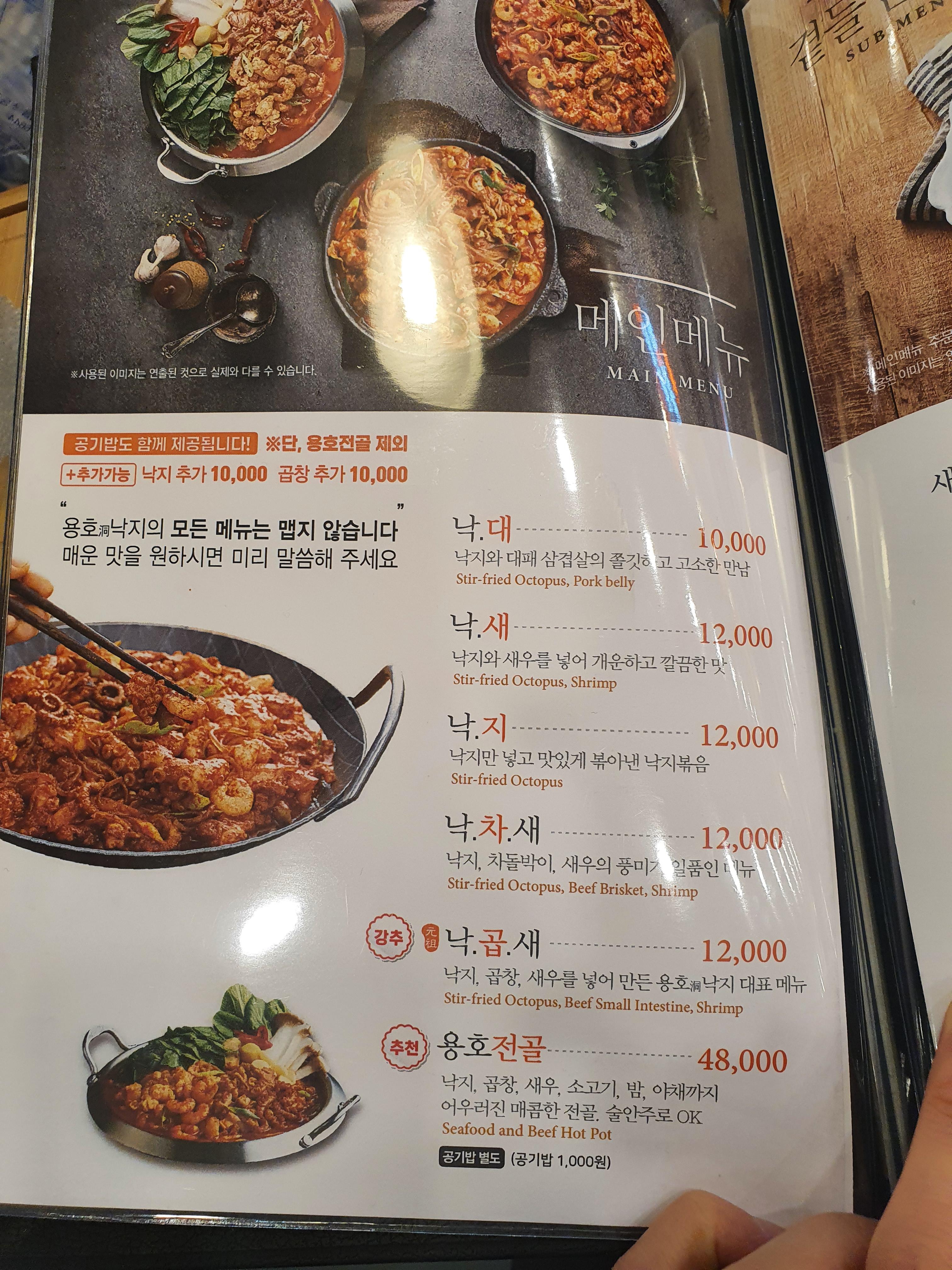 용호 낙지의 모든 메뉴는 맵지 않대요!