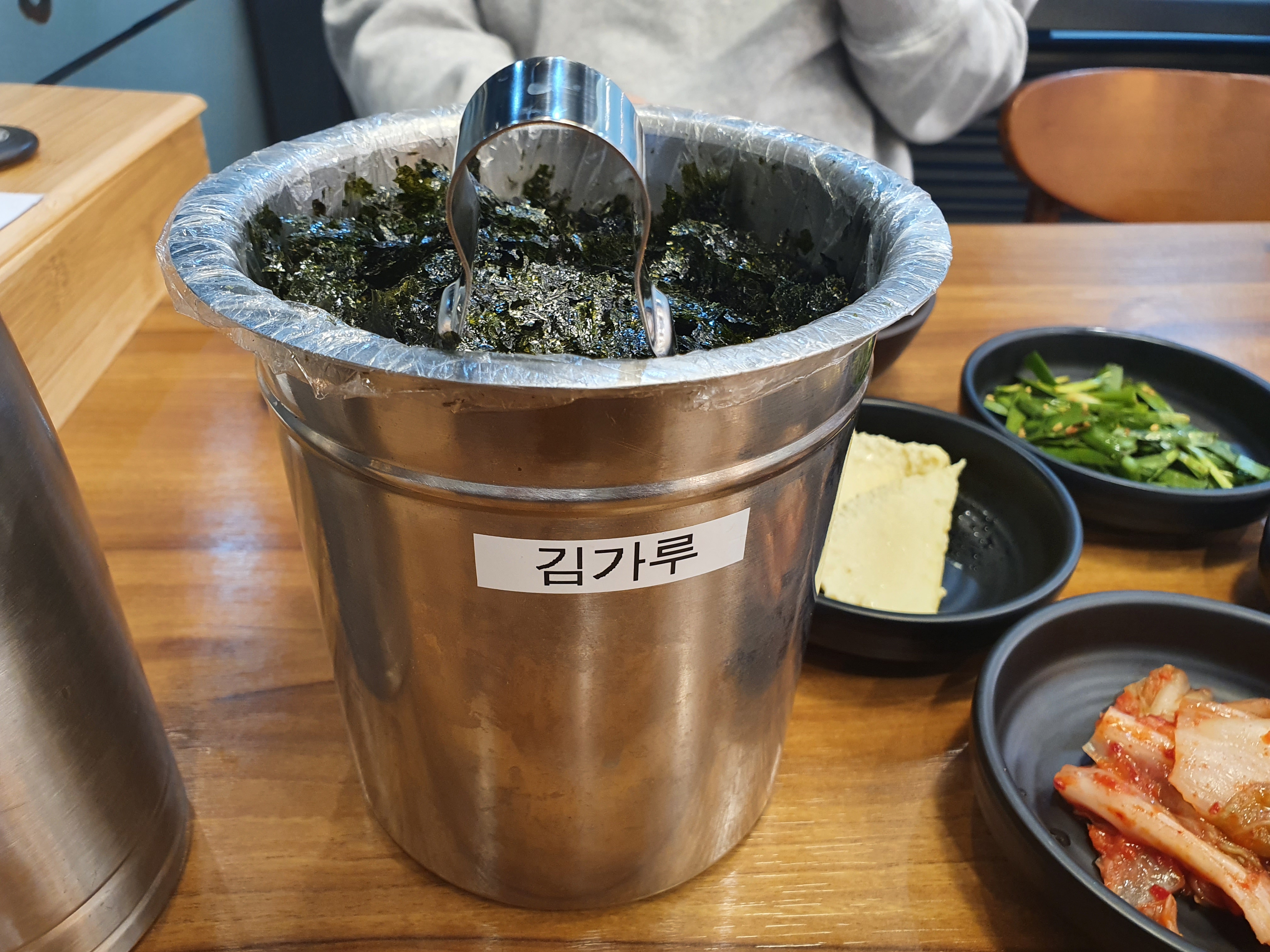 김가루는 테이블당 하나씩 구비되어 있습니다.