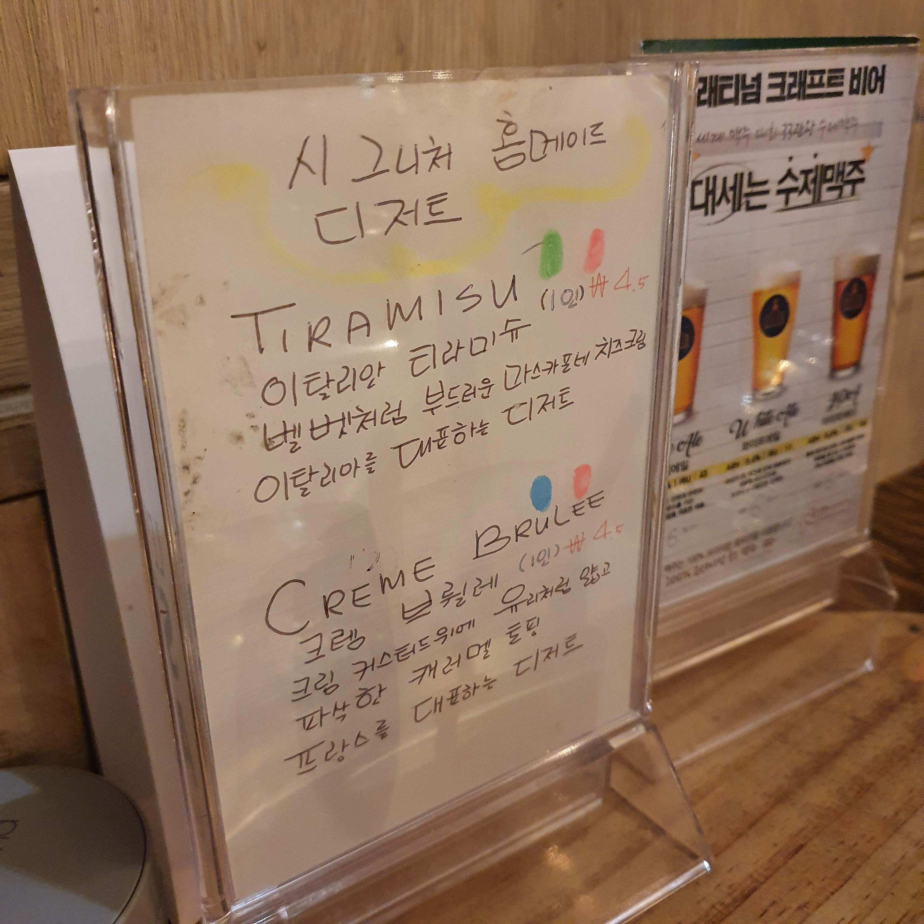 마지막으로 다 먹은 후에 테이블 위에 디저트 메뉴가 있길래