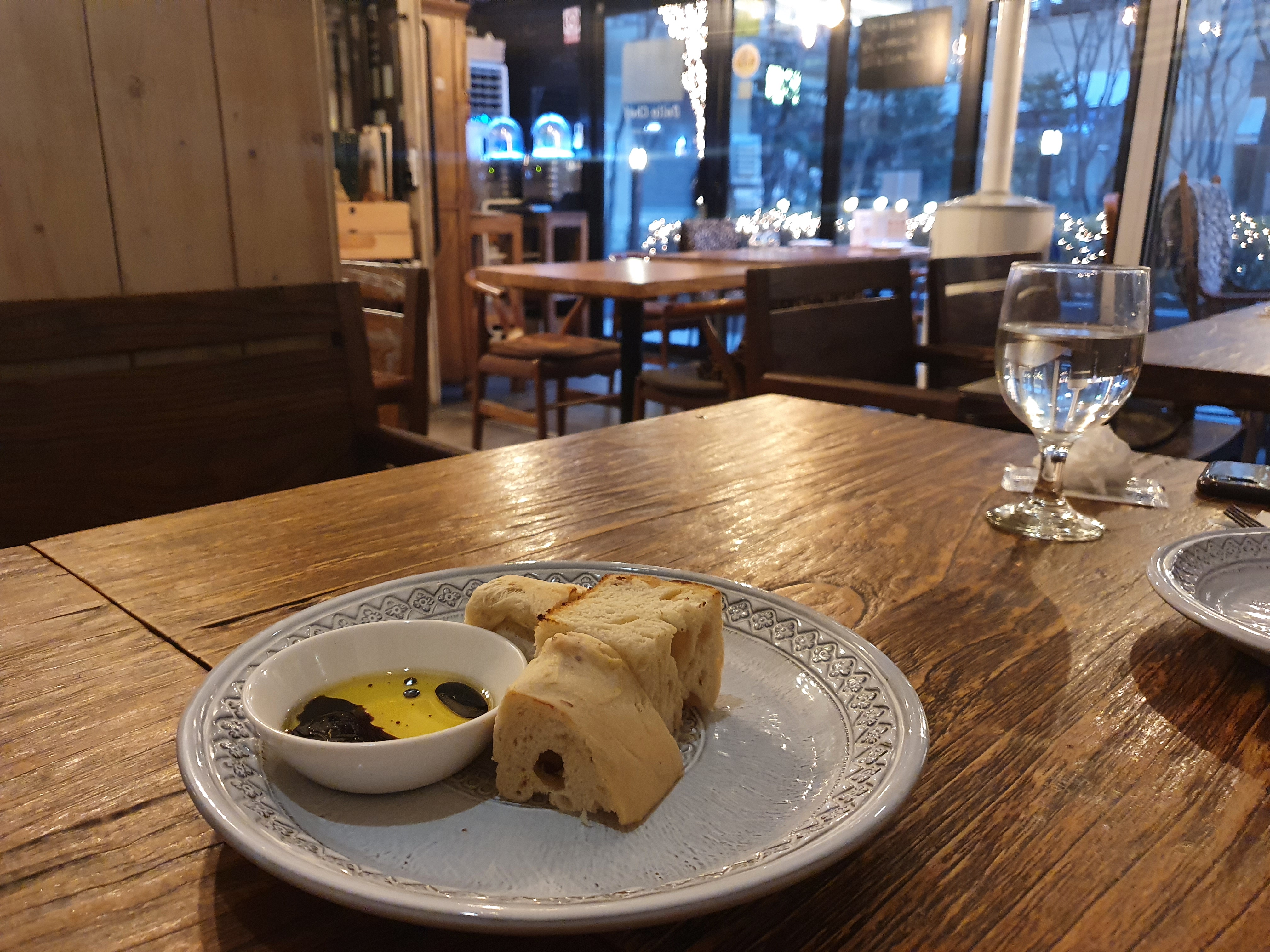 배고팠기도 했지만 잘 구워진 빵에 발사믹 소스 가득 찍고 입에 넣으니