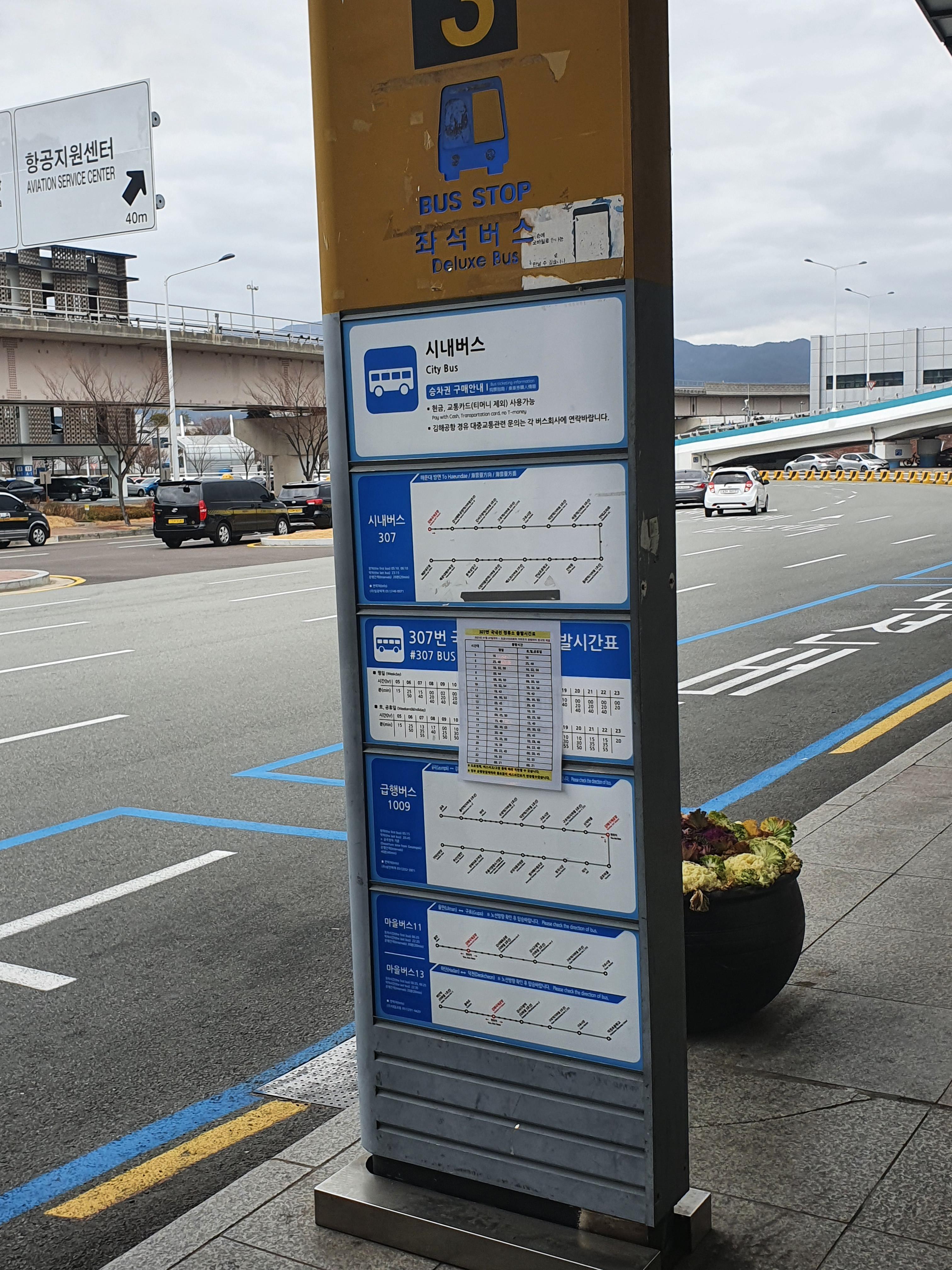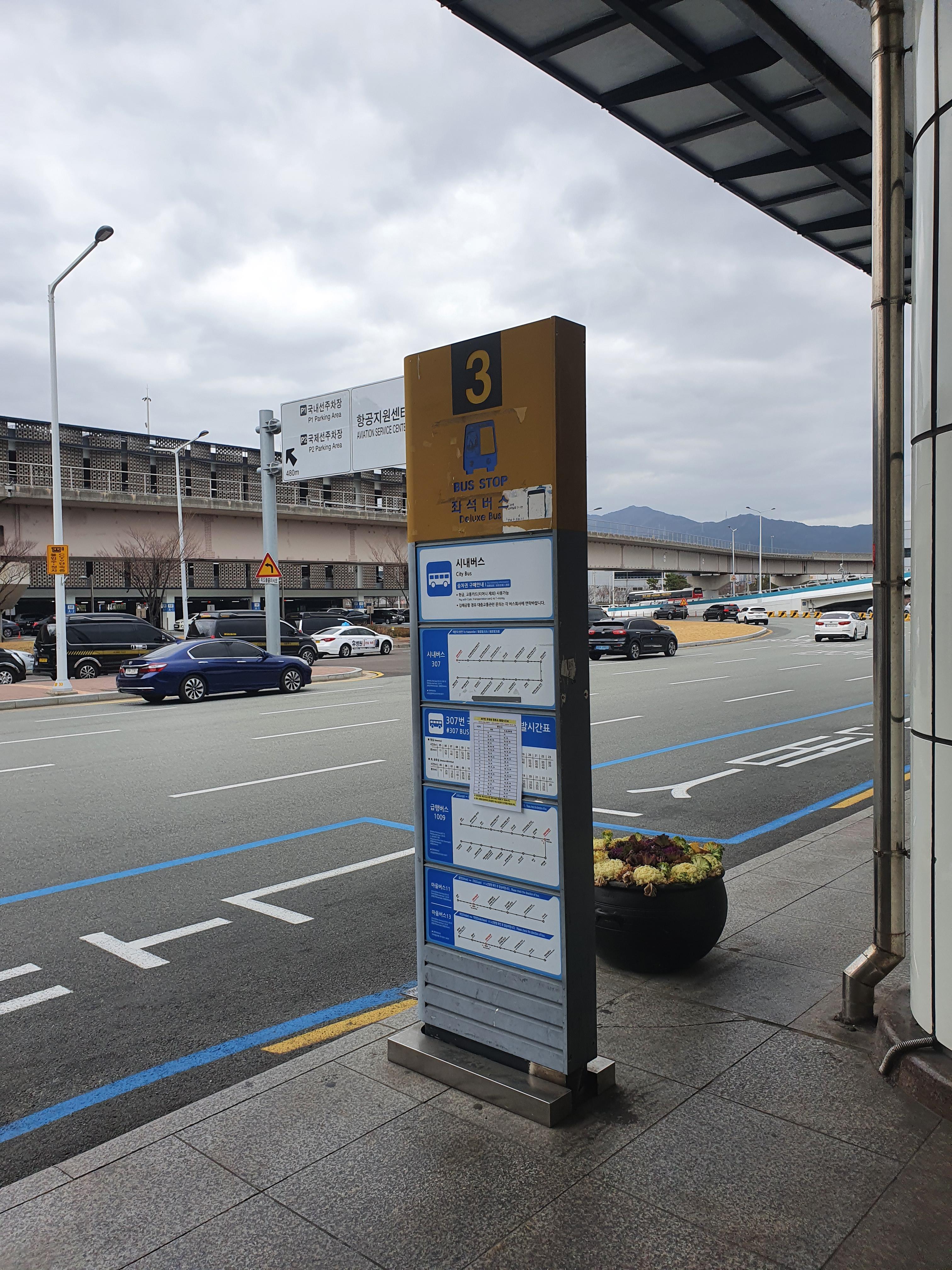 그래서 미리 찾아놓은 307버스를 타러 공항 앞으로 나왔어요.