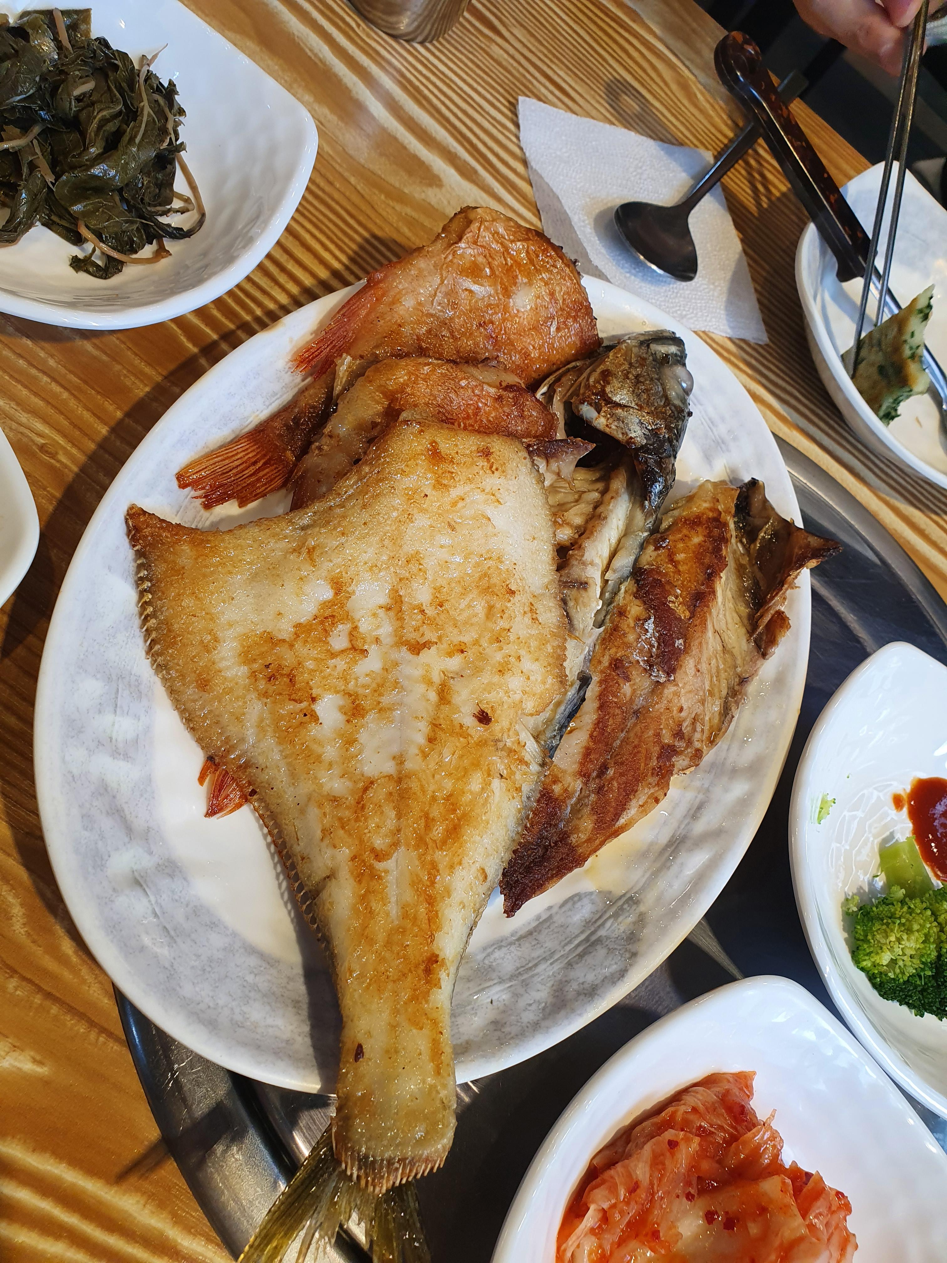 고등어와 가자미 그리고 열기를 주셨고 반찬뿐만 아니라 된장찌개가 아주 훌륭했습니다.