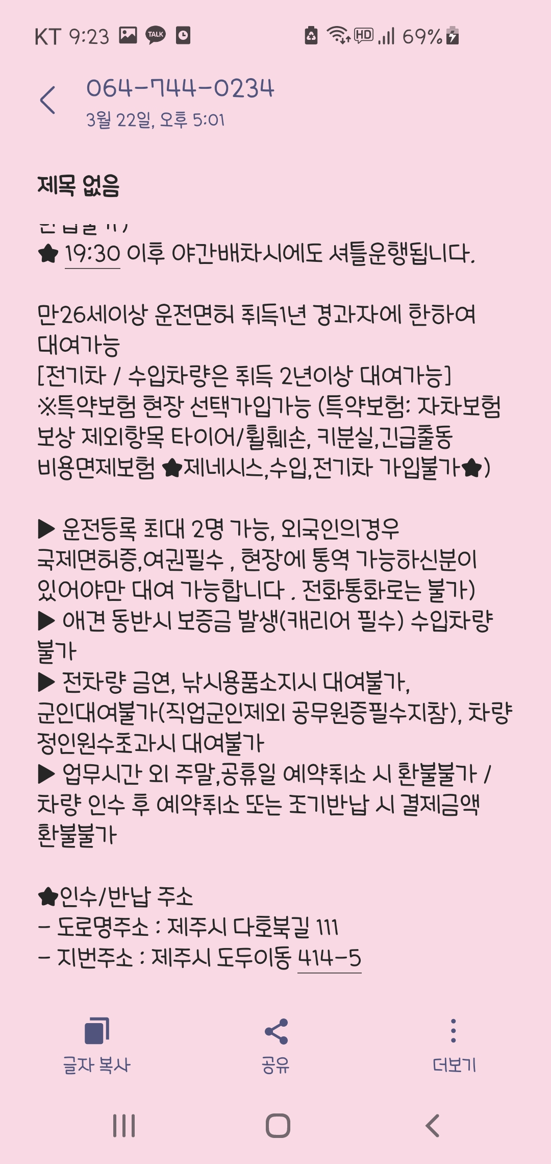 마지막으로 인수/ 반납하는 주소가 친절하게 적혀있어서