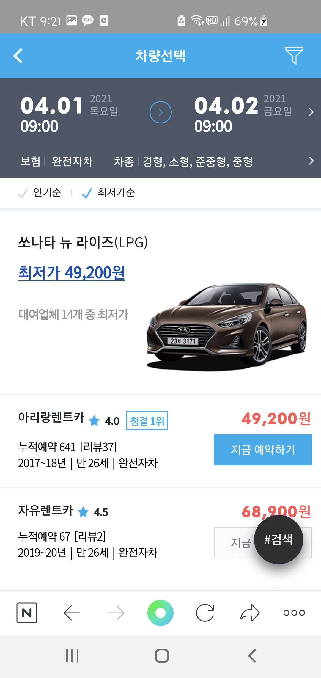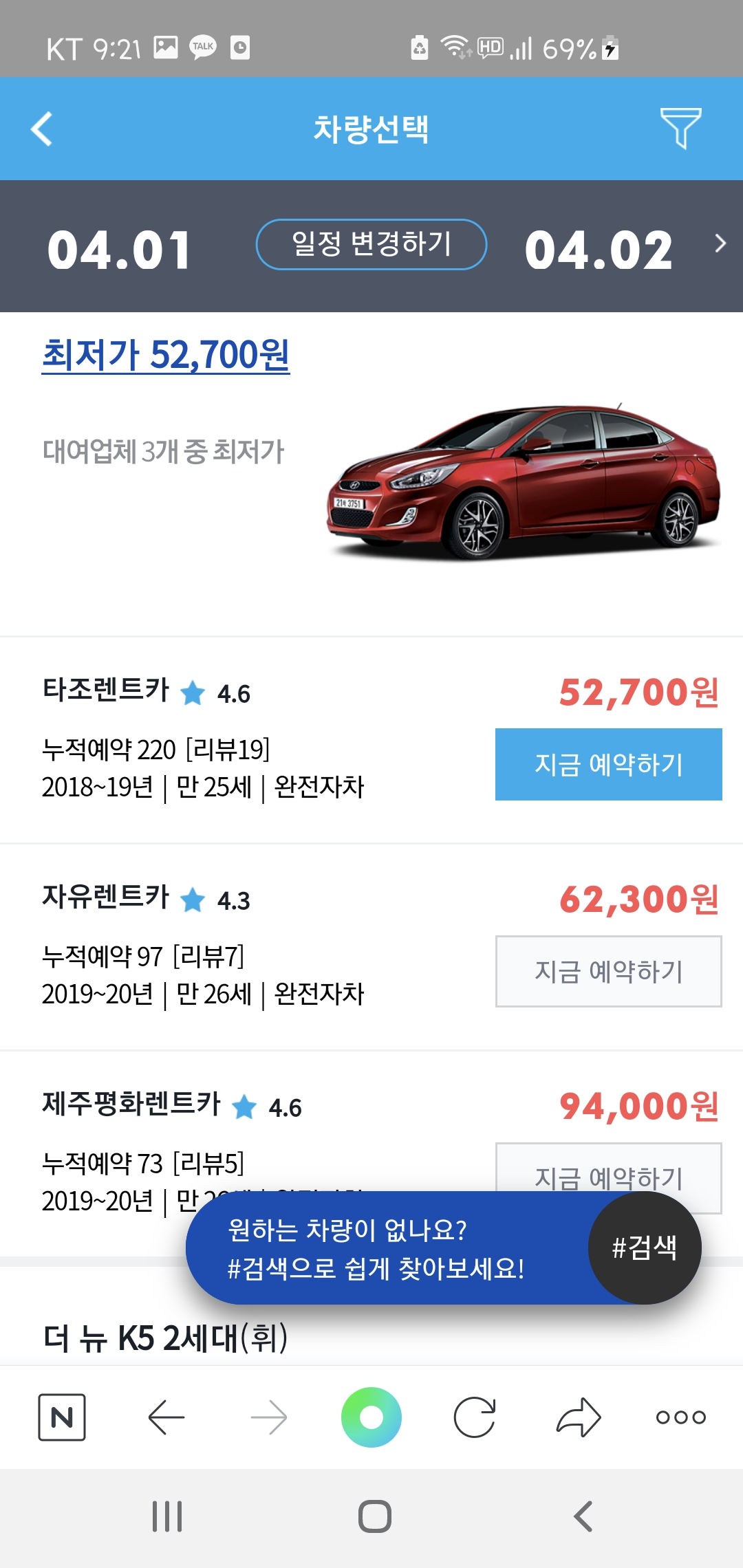 다양한 가격대와 렌트카 회사를 비교해주고 자신에게
