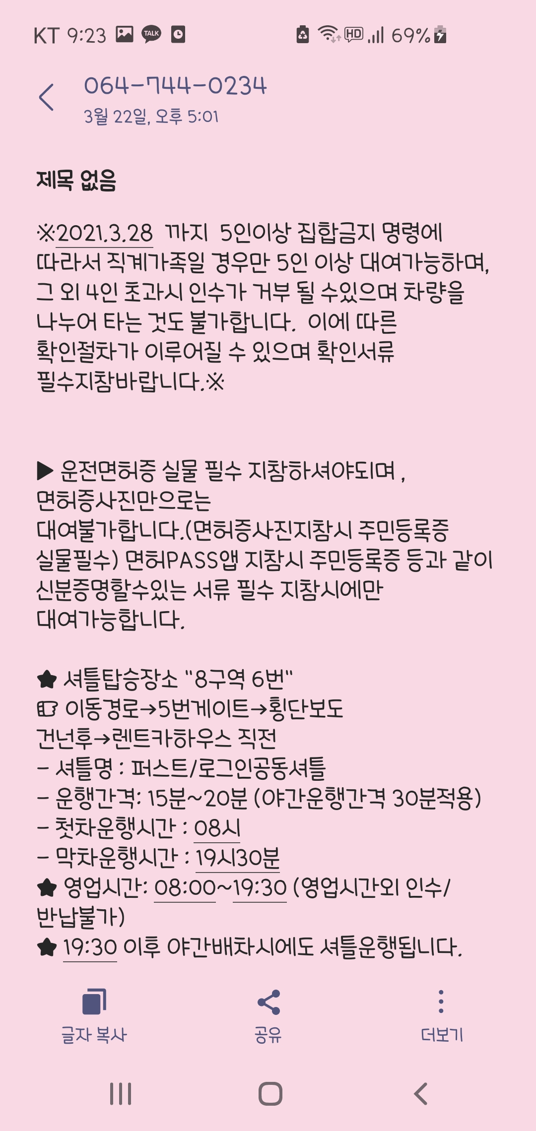 일단 예약하게 되면 이렇게 문자로 안내가 와요.