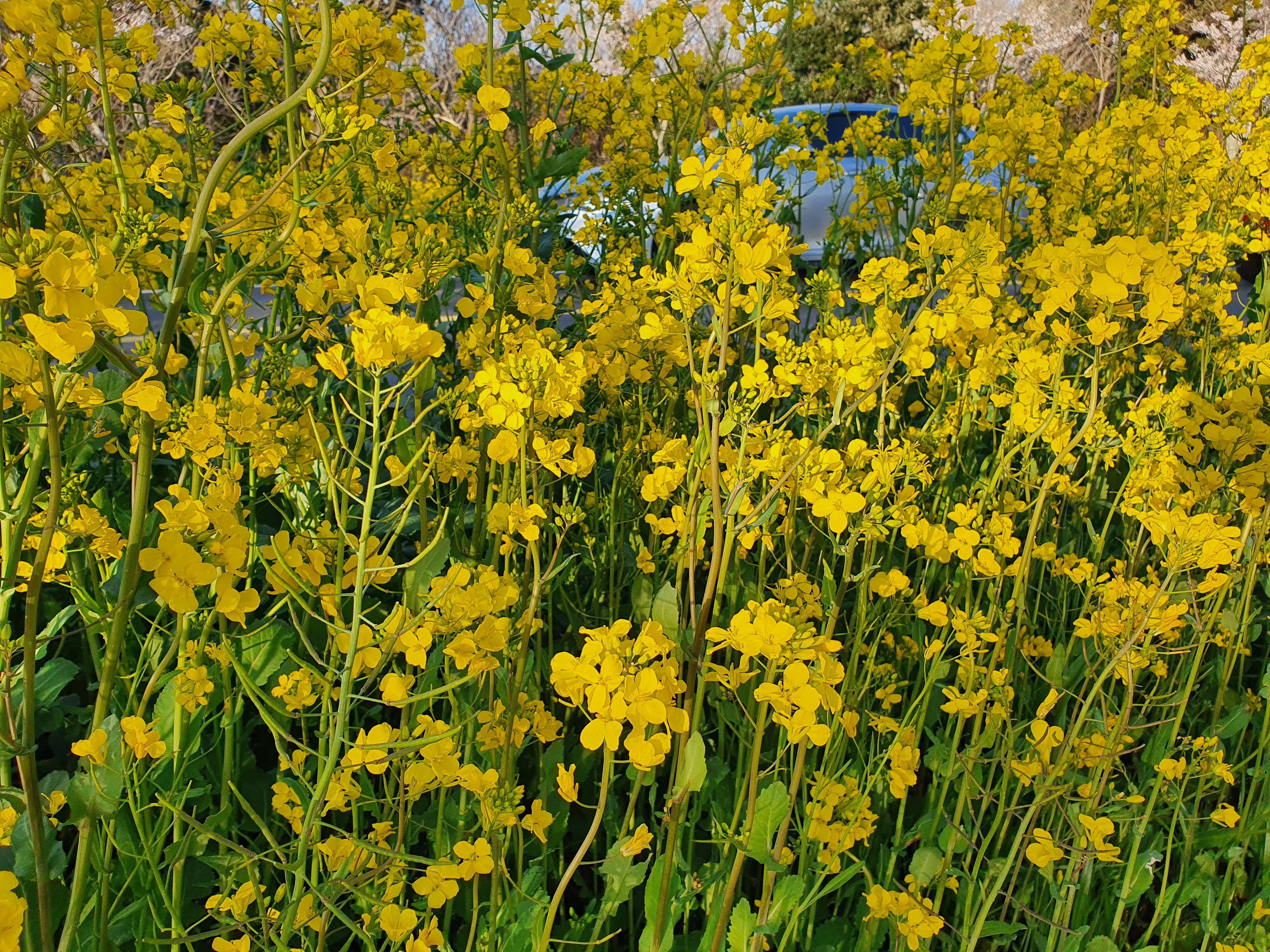 개인 방문객들이 스스로 '드라이브 인 관람'이라고 해서 차 안에서 벚꽃과 유채꽃을