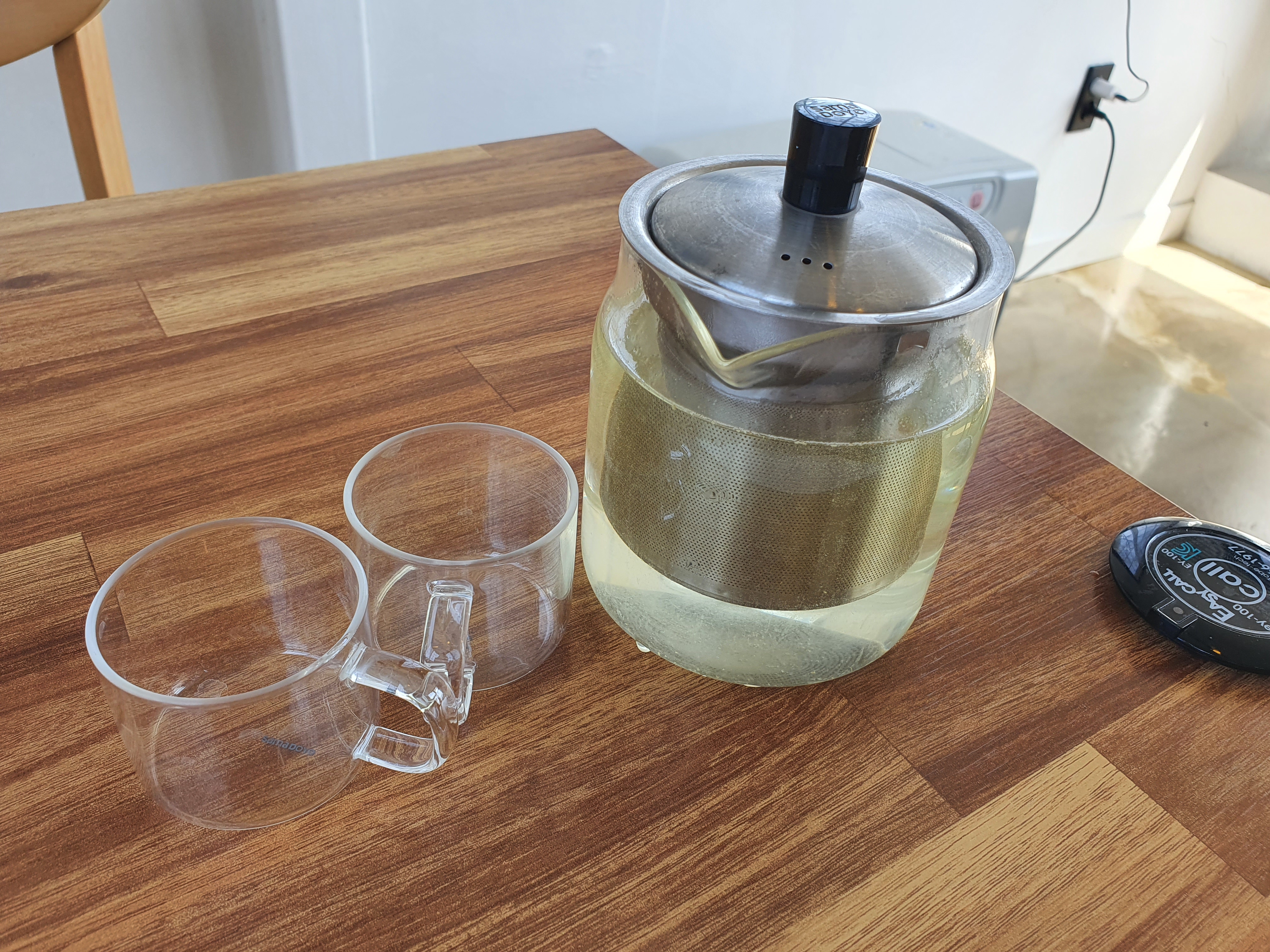 메뉴를 시키고 나니 티를 우린 물을 주셨어요.