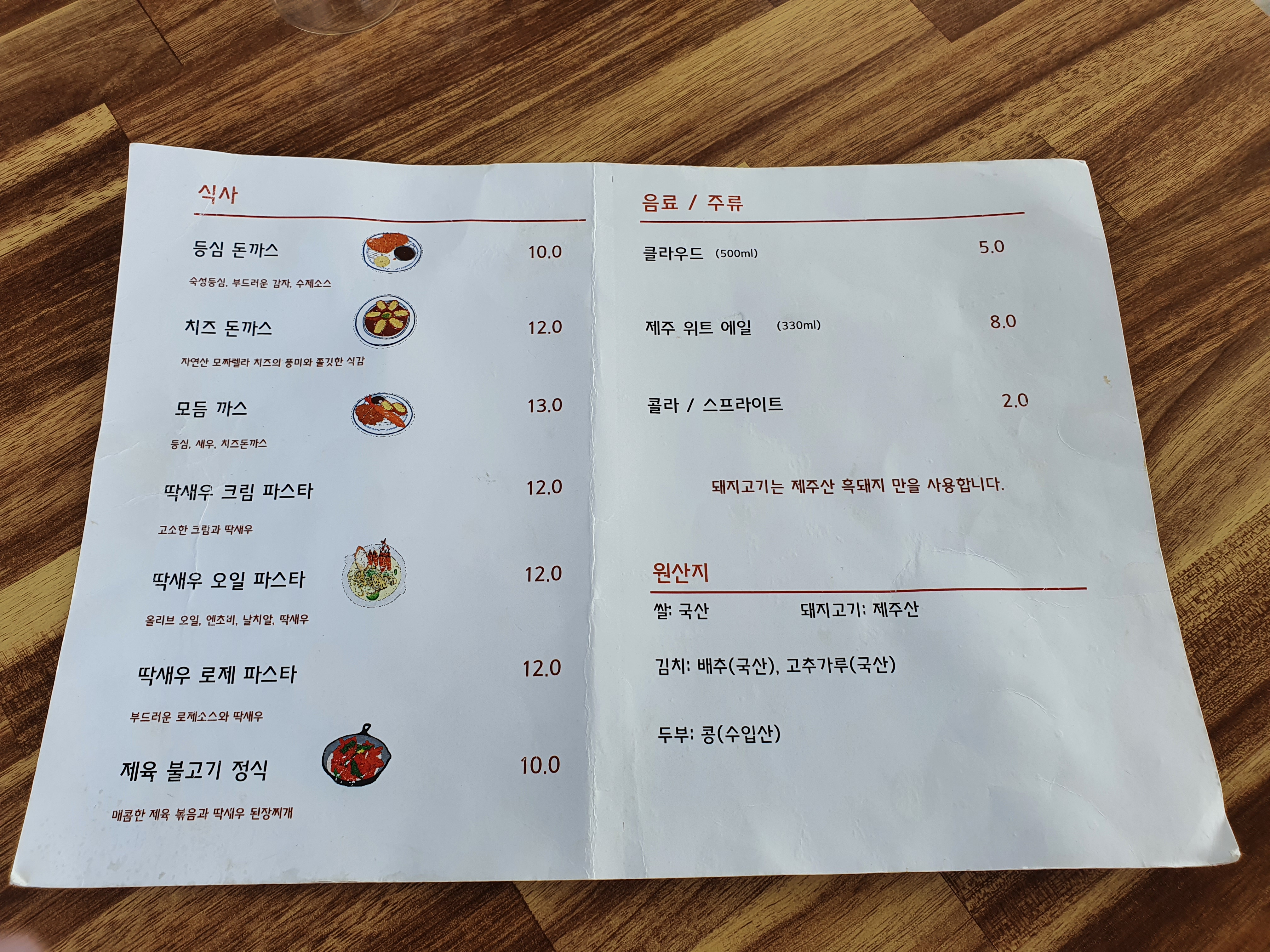 등심 돈가스와 치즈돈가스 그리고 딱새우를 이용한 파스타 요리 등이 있었어요.