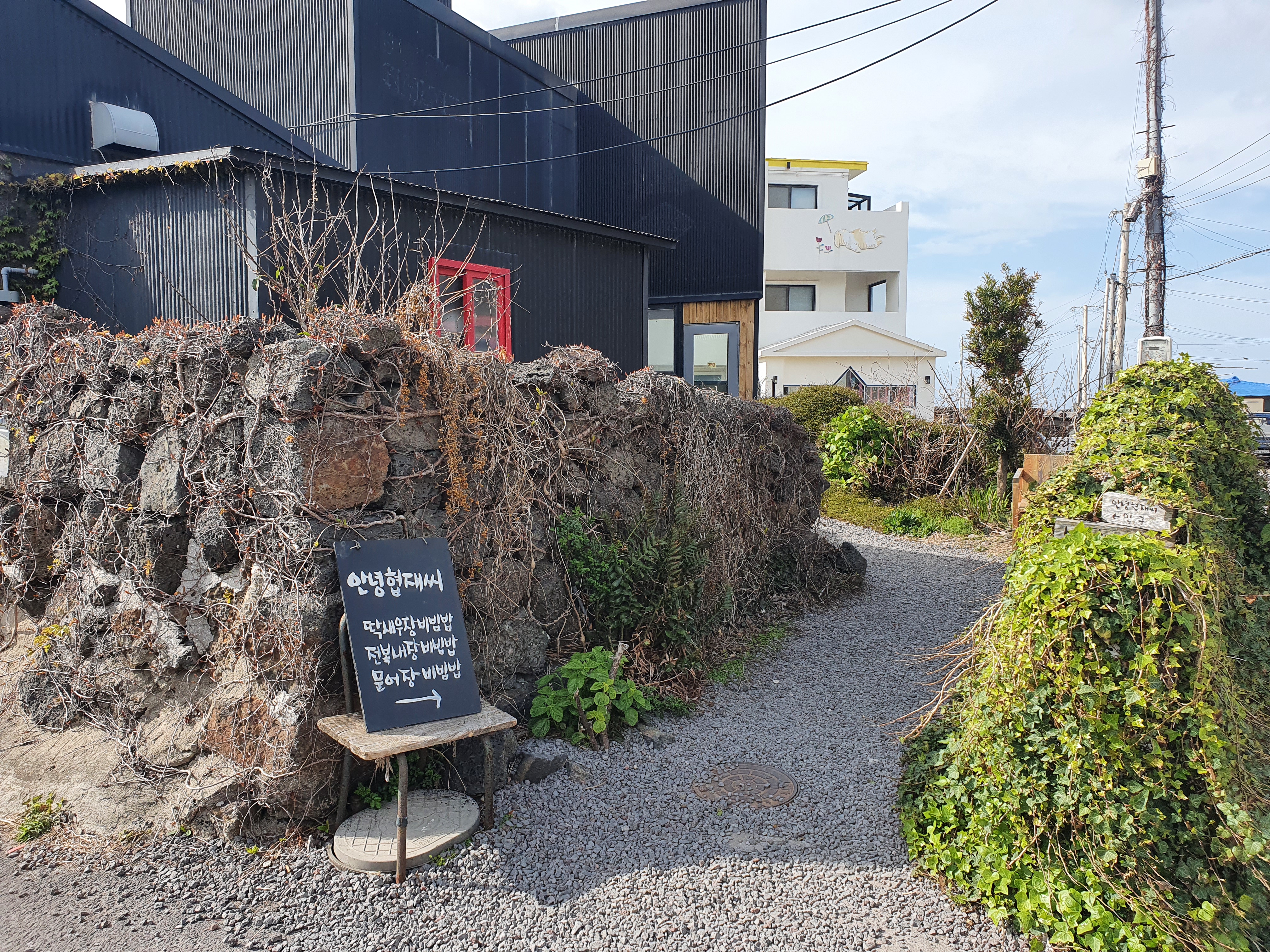 돌담으로 둘러싸여 있는 곳이 바로 '안녕 협재 씨'입니다.