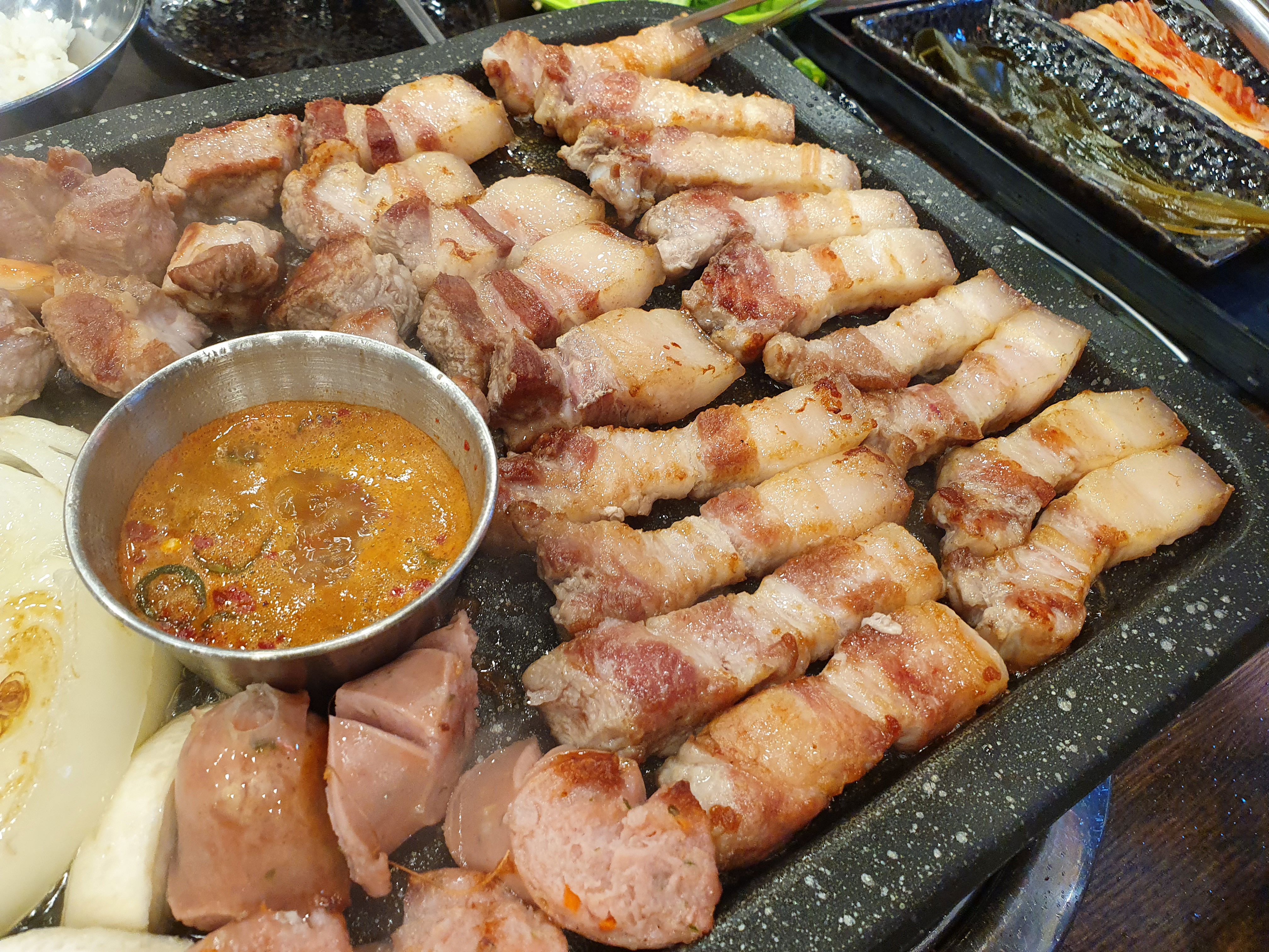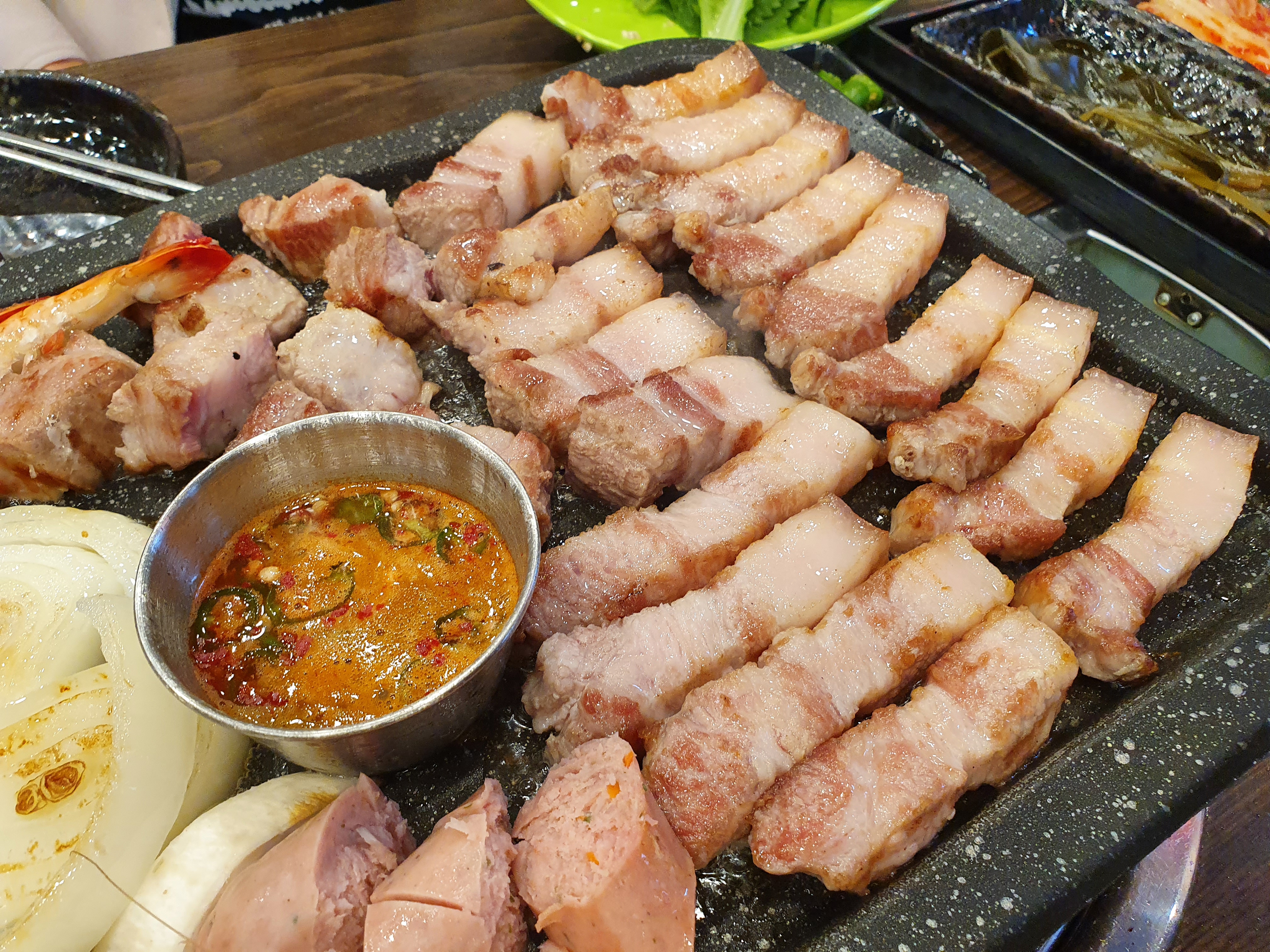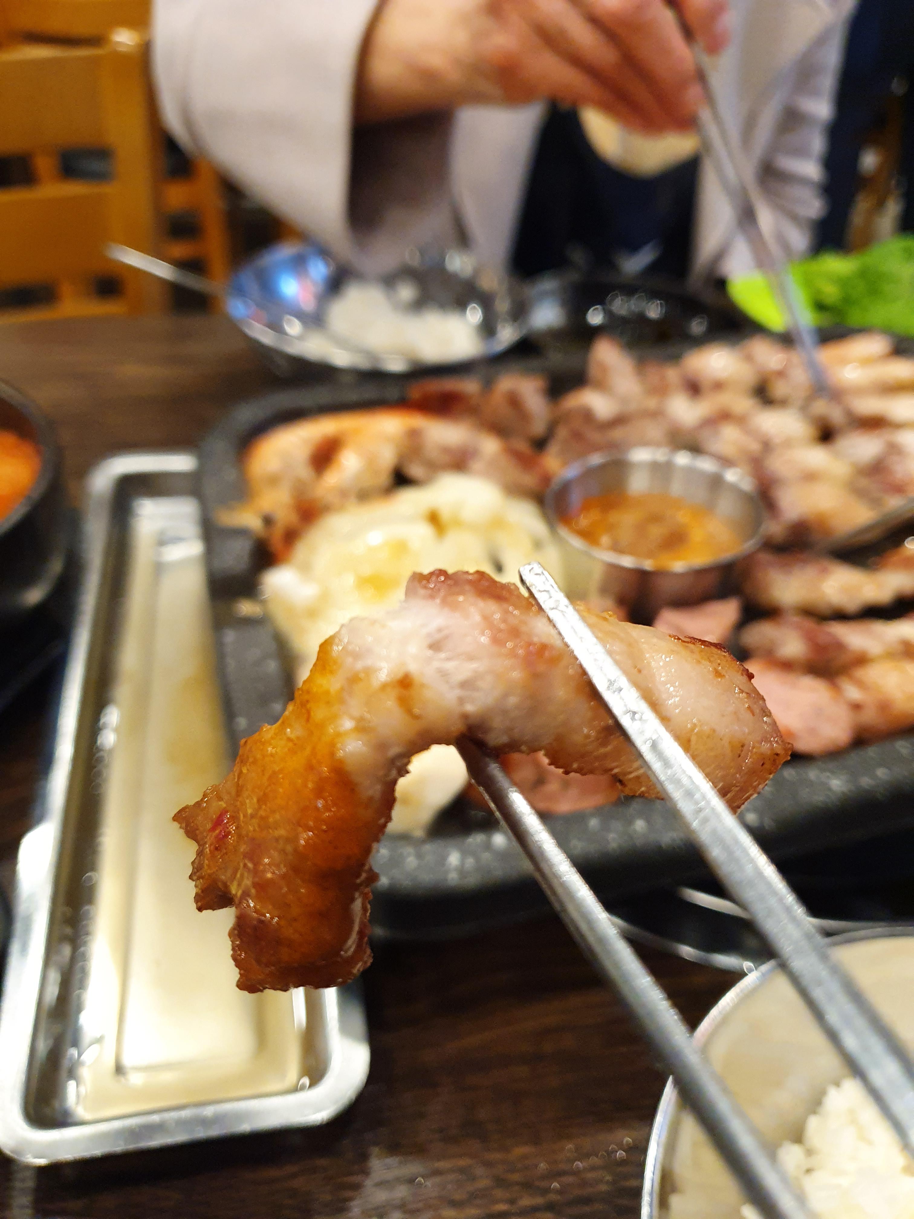 오겹살은 정말 기름이 사이사이 적절하게 들어가있어서 식감이 삼겹살보다 더 쫀득쫀득하고