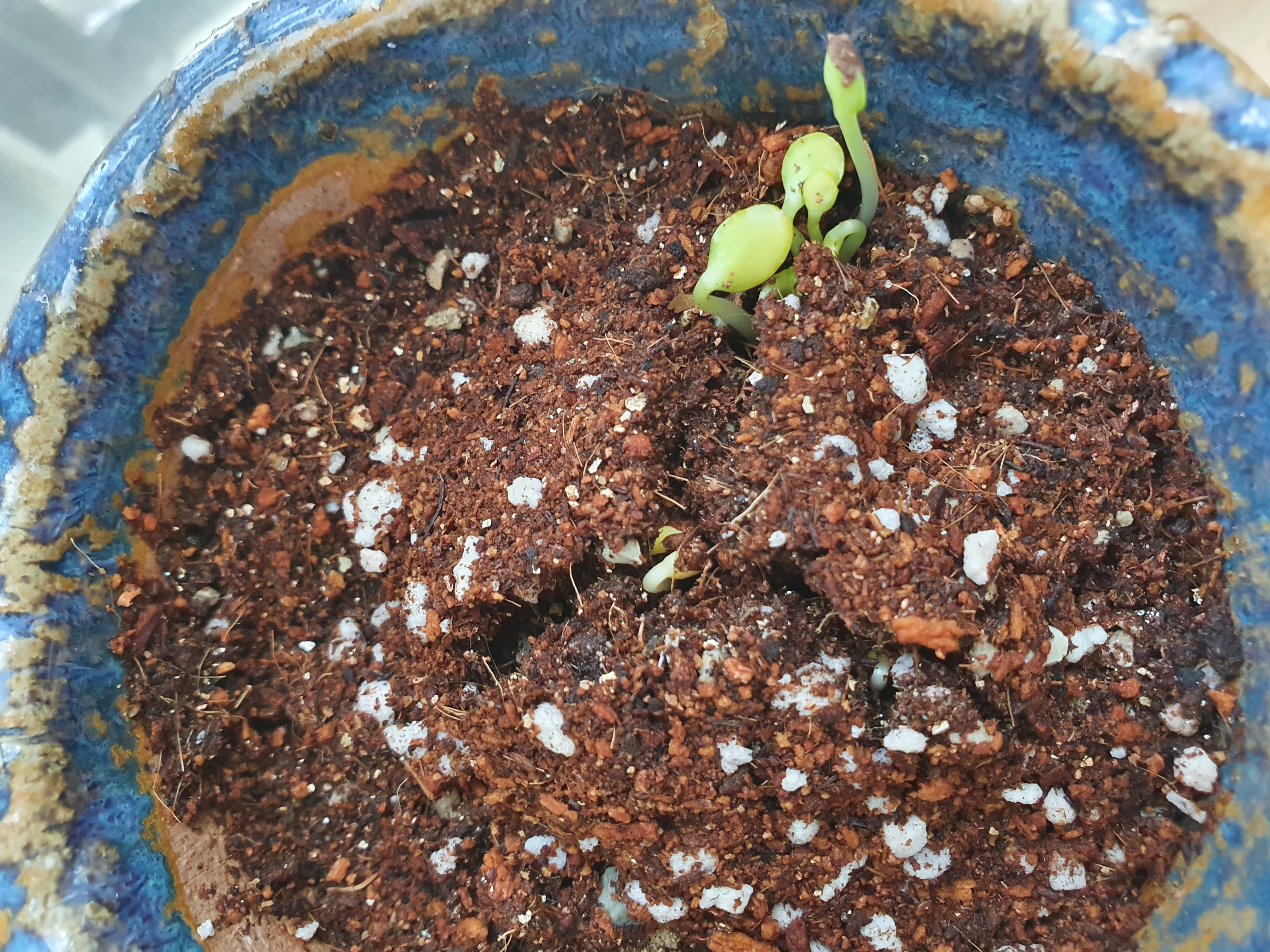 물을 듬뿍 주고 이틀 정도 지나니 뽈록하면서 초록색 대가 살짝씩
