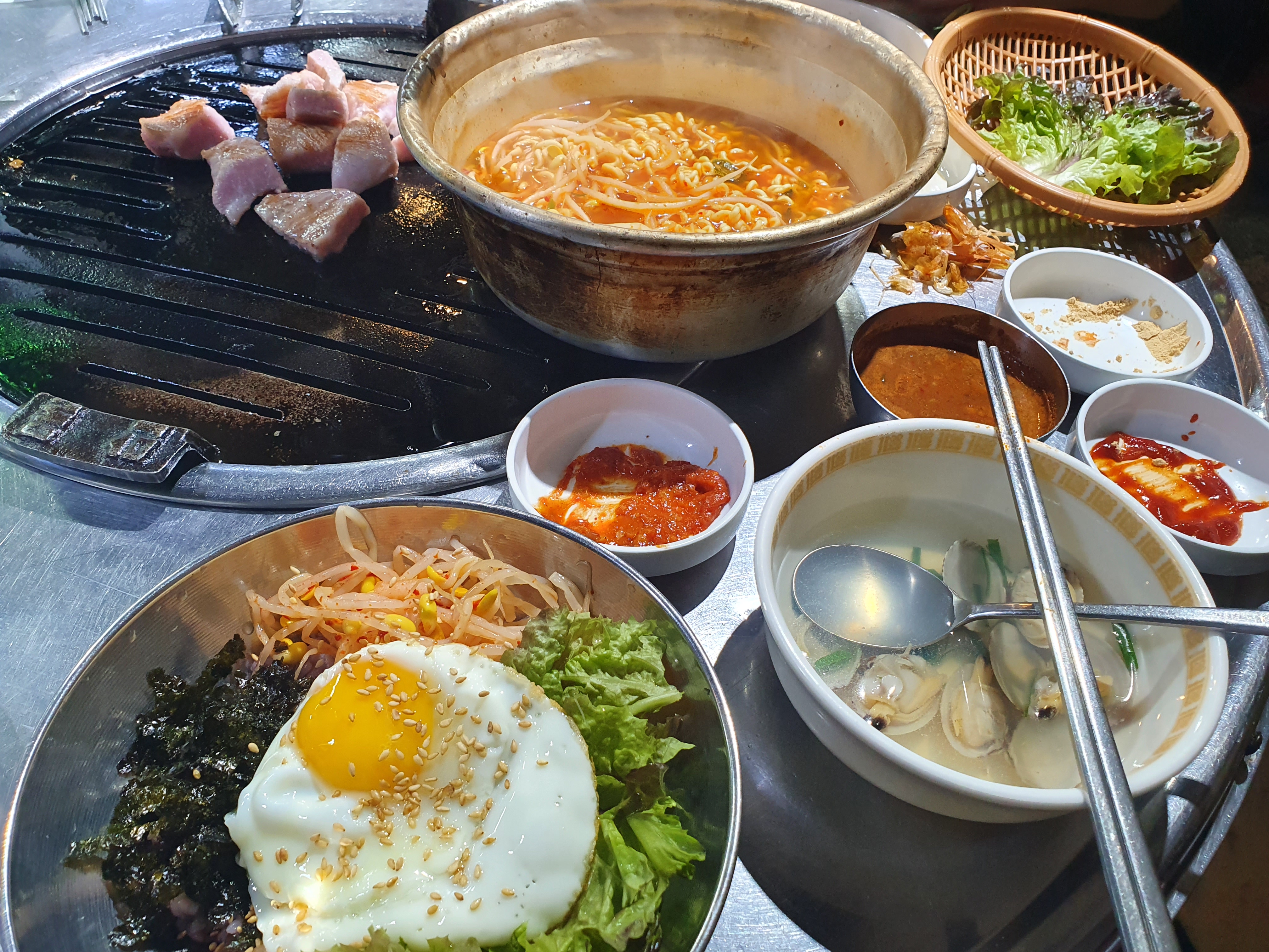 옆 테이블은 보니까 냄비 비빔밥을 개인당 하나씩 시켜서 고기랑 함께 드시면서 시작하시더라고요.