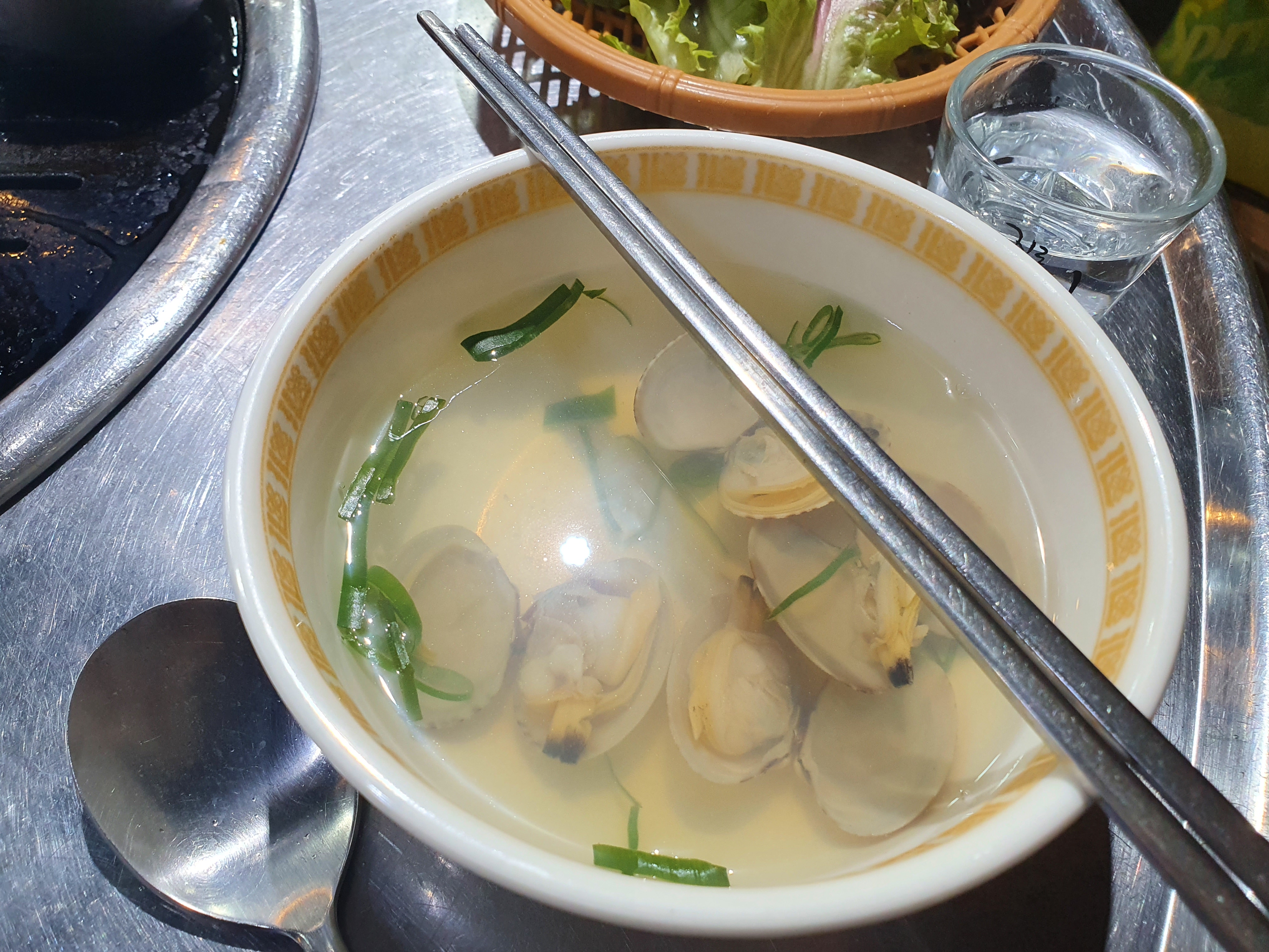기본 반찬으로 나오는 바지락 국도 아주 별미입니다.