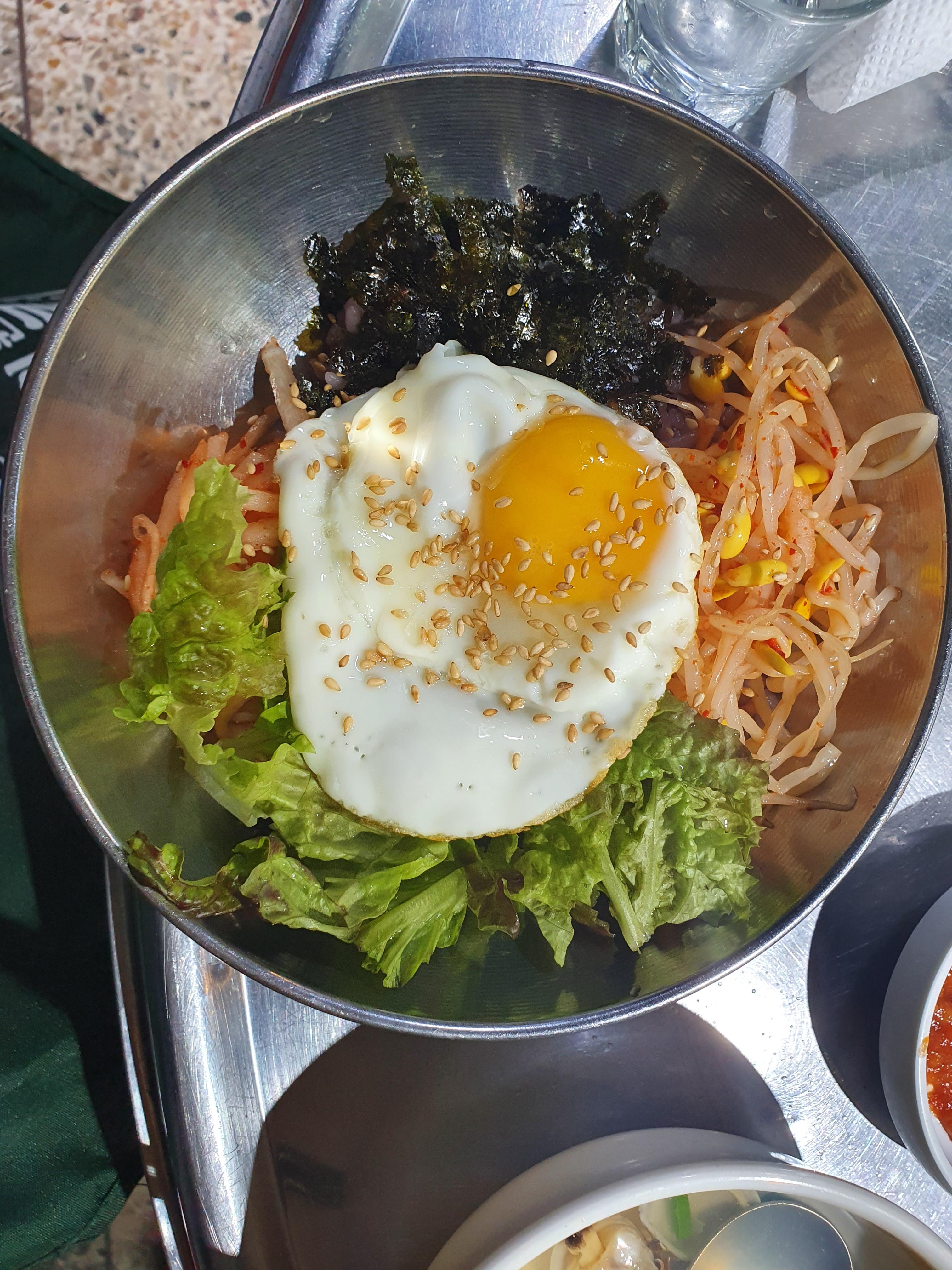 사실 공깃밥만 시켜도 1,000원인데 이 비빔밥에는 계란, 콩나물, 무생채, 상추, 소스, 김가루 등의 신선한 재료를