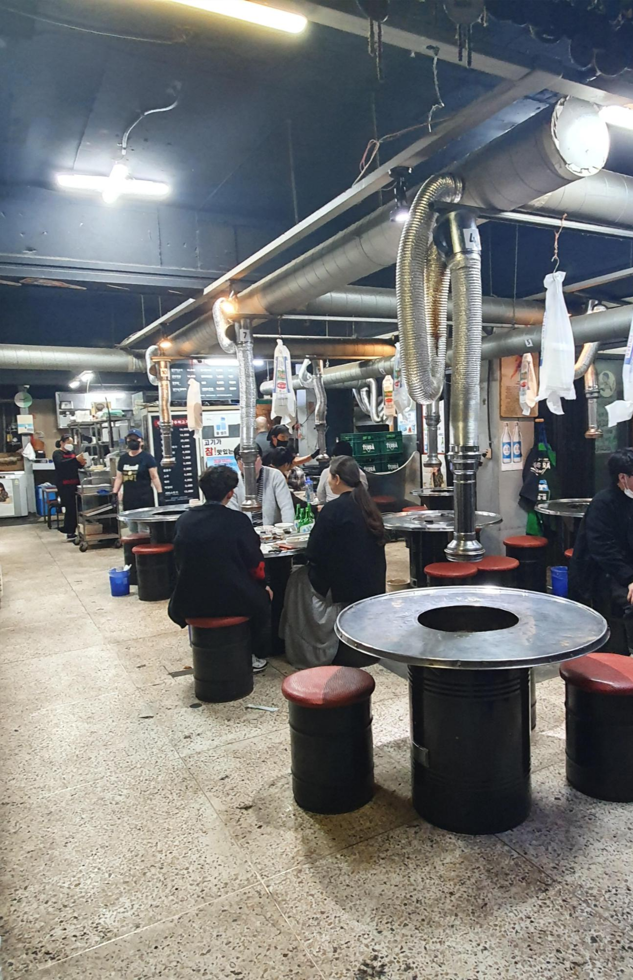 가게 내부는 이런 분위기로 연탄불로 구워지는 고깃집의 모습인데