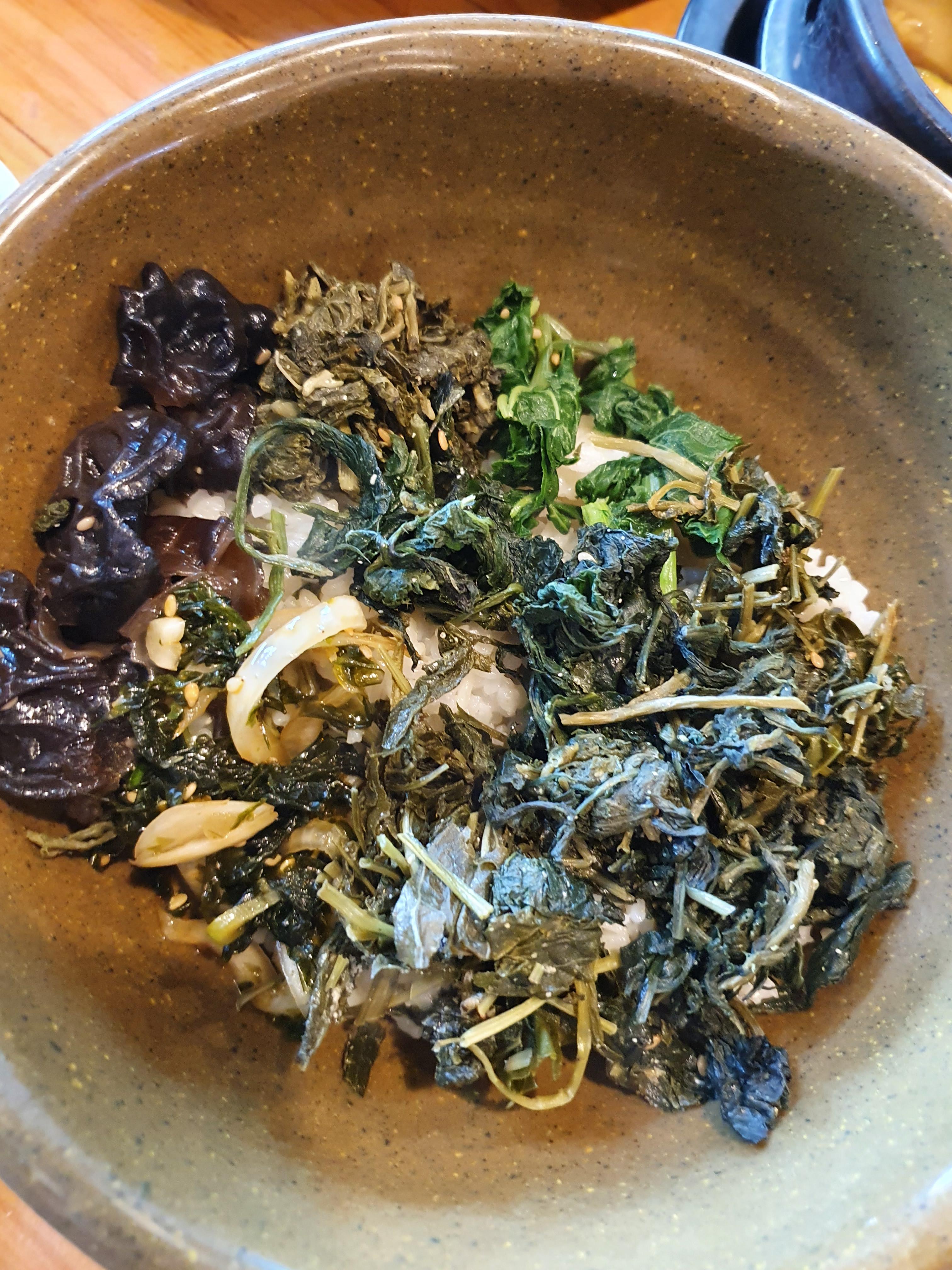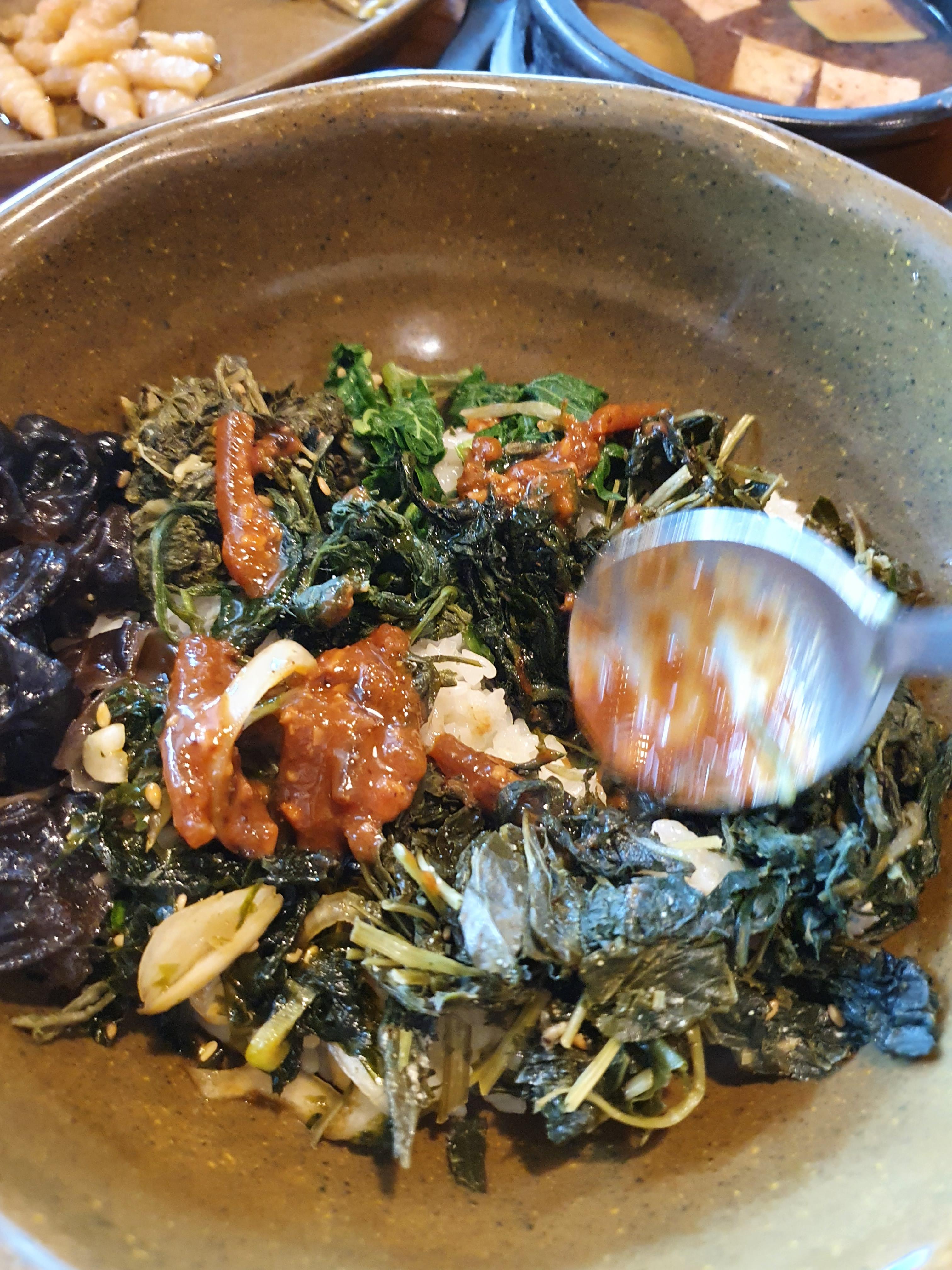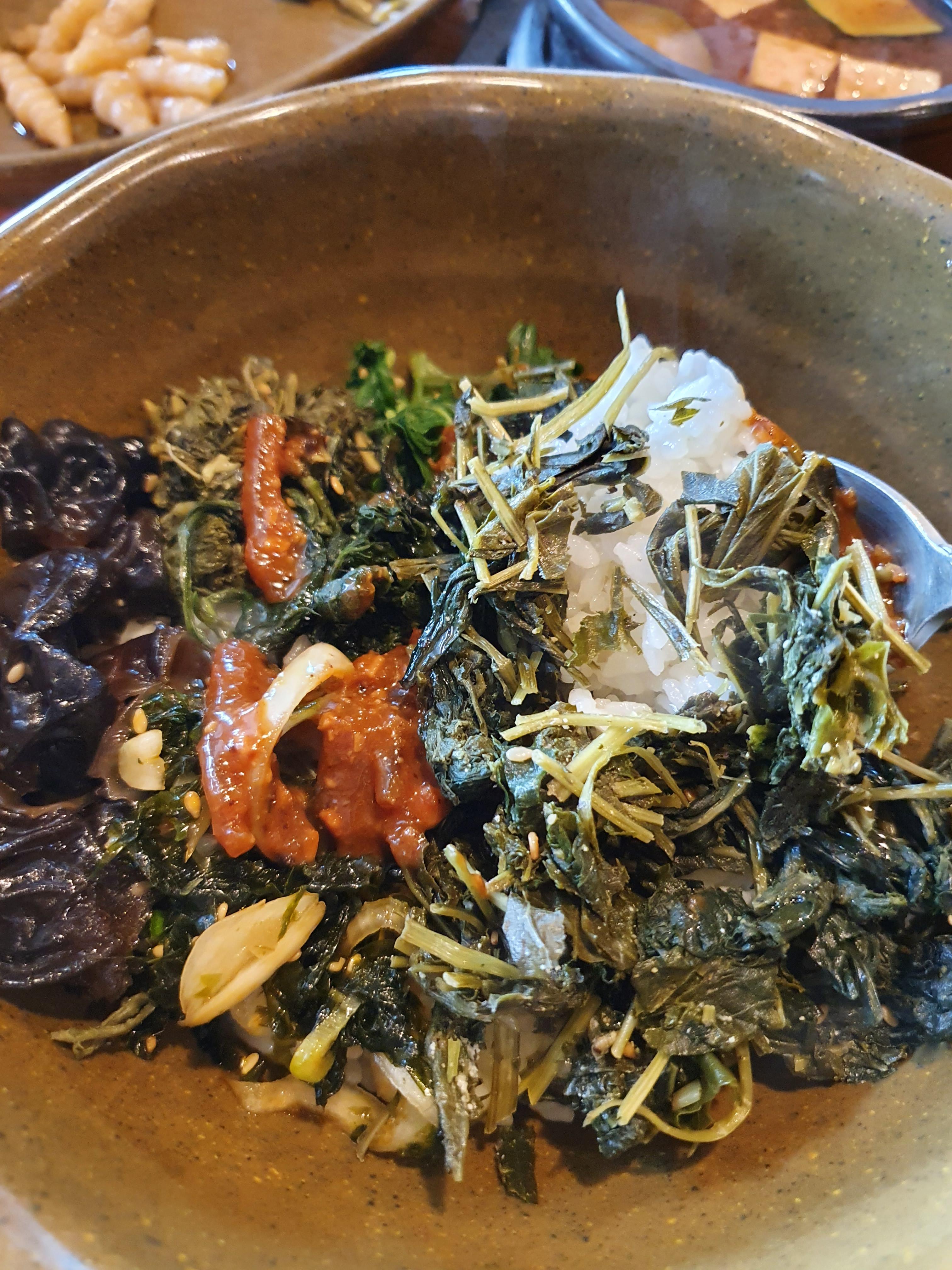 강된장의 향긋한 향이 올라오면서 나물의 맛이 잘 어우러졌어요.