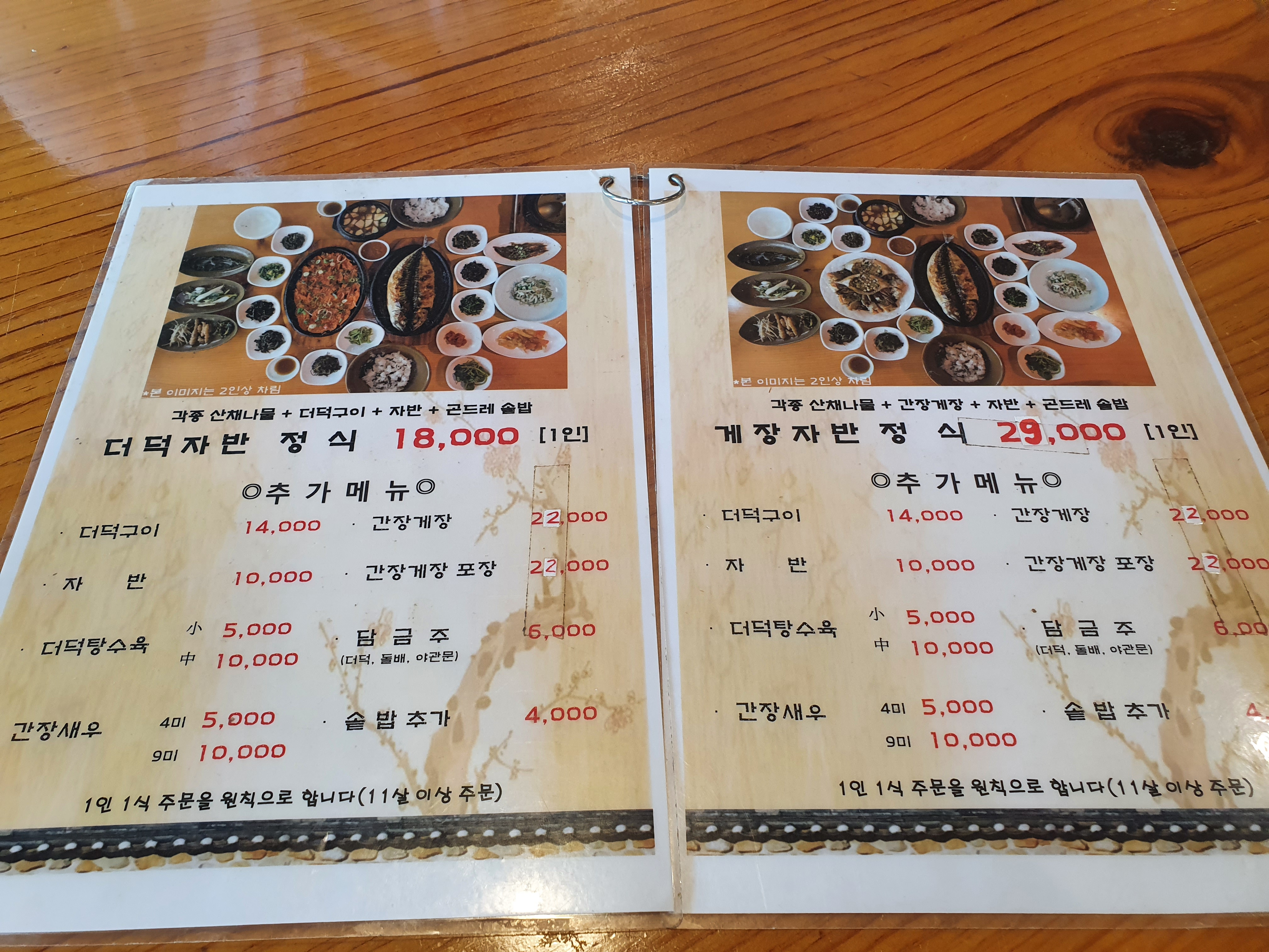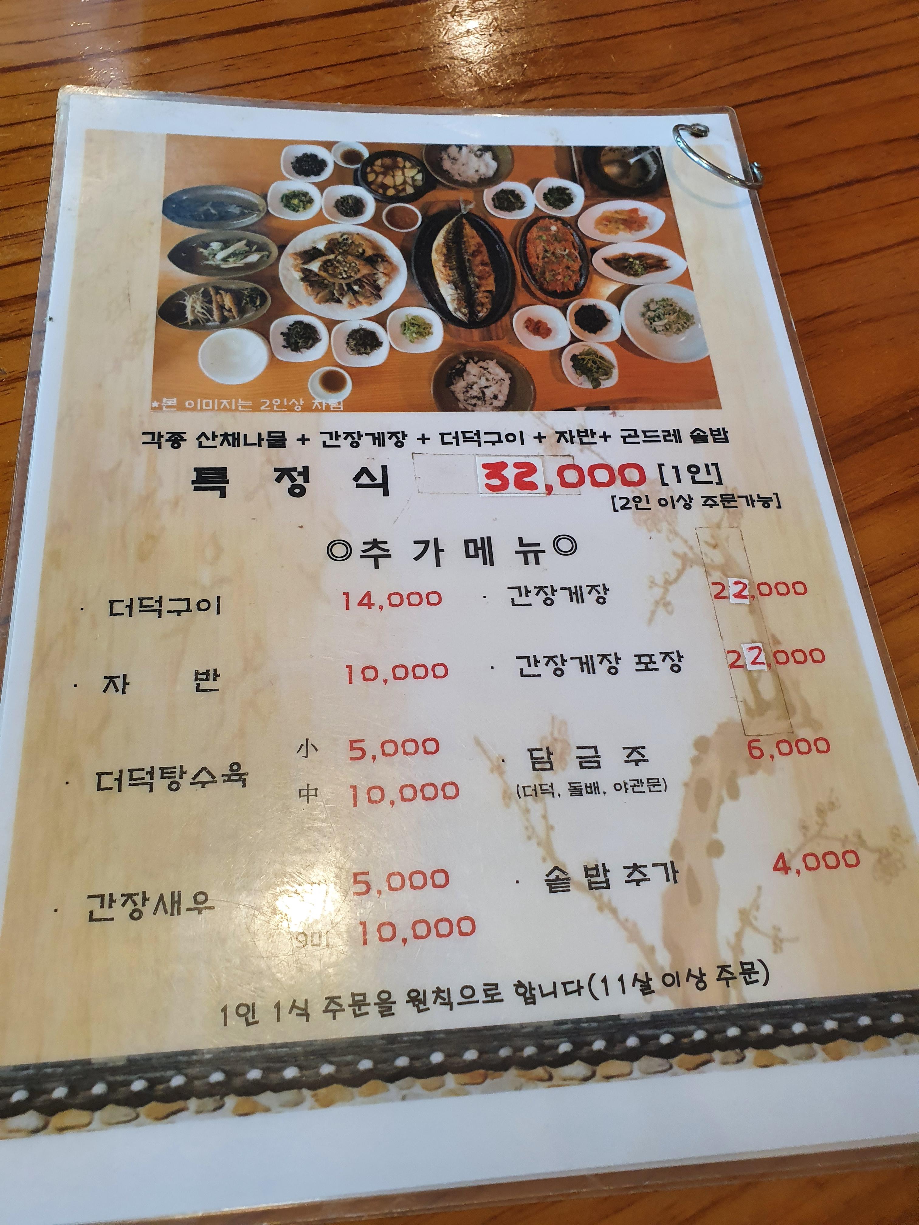 다른 메뉴를 더 드시고 싶으시다면 추가 메뉴에서 원하시는 더덕, 간장새우, 간장게장 등을 추가하시면