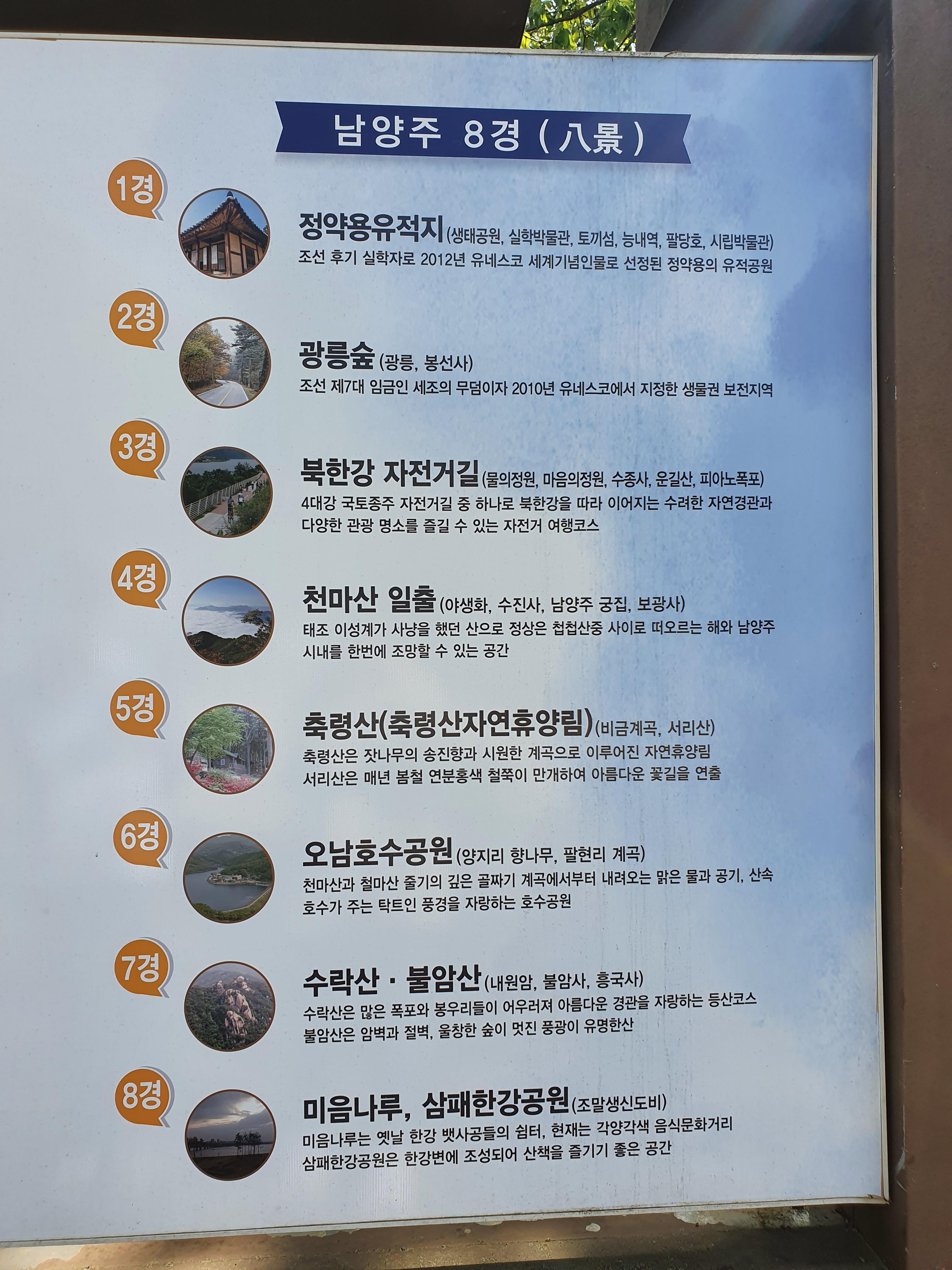 저는 광릉 앞에 이렇게 비치된 안내판을 보며 8경에 대해 알아볼 수 있었어요.