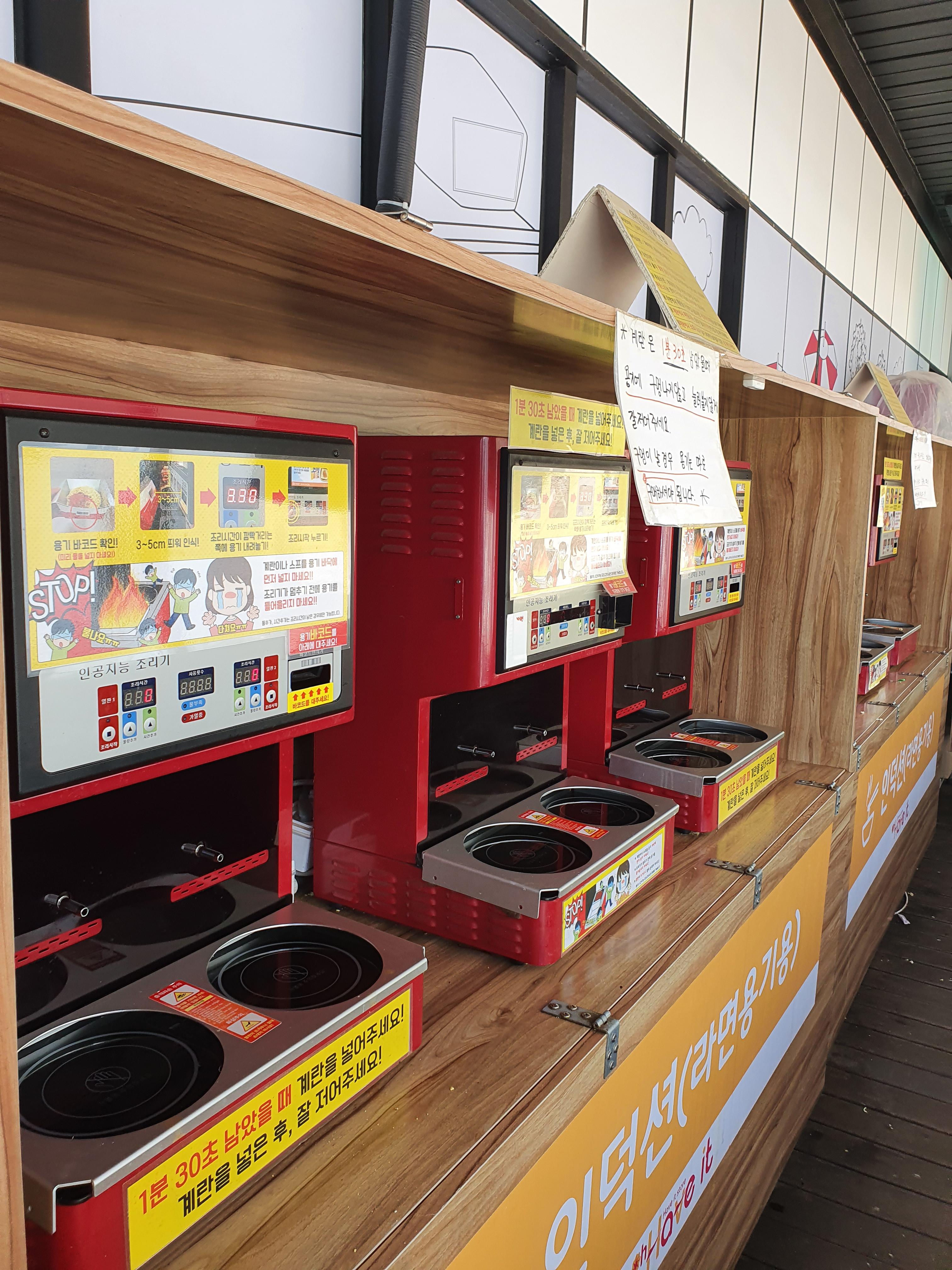 보는 과정이 진짜 재미있어요. 예전에는 이렇게 라면을 끓여주는 기계가 있을거라곤
