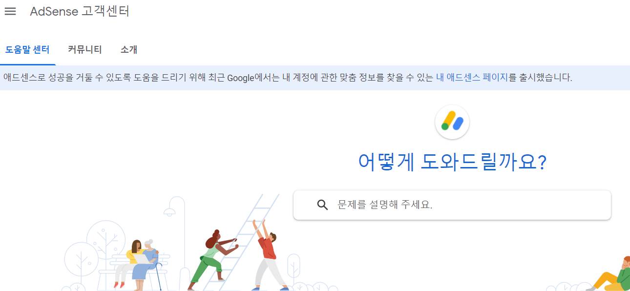 그럼 일단 무효클릭이 나의 잘못이 아니다라는 것을 증명하기 위해 에드센스 고객센터로 갑니다.