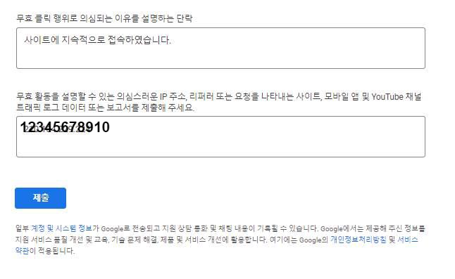 웹게시자 아이디는 자신의 구글계정에서 톱니바퀴의 설정부분을 누르고 계정설정부분을 들어가면 웹게시가id가 바로 보입니다. 그 아이디를 적으면 되고요. 자신의 URL을 적고 주제 및 무효클릭행위로 의심되는 이유 및 데이터를 적어서 제출하면 됩니다.