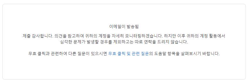 에드센스 고객센터에는 무효클릭 신고양식 이라는 것이 있는데요, 의심되는 계정이나 무효 활동을 증명할 수 있는 아이피 등을 넣어 이메일을 보내는 틀이 있답니다.