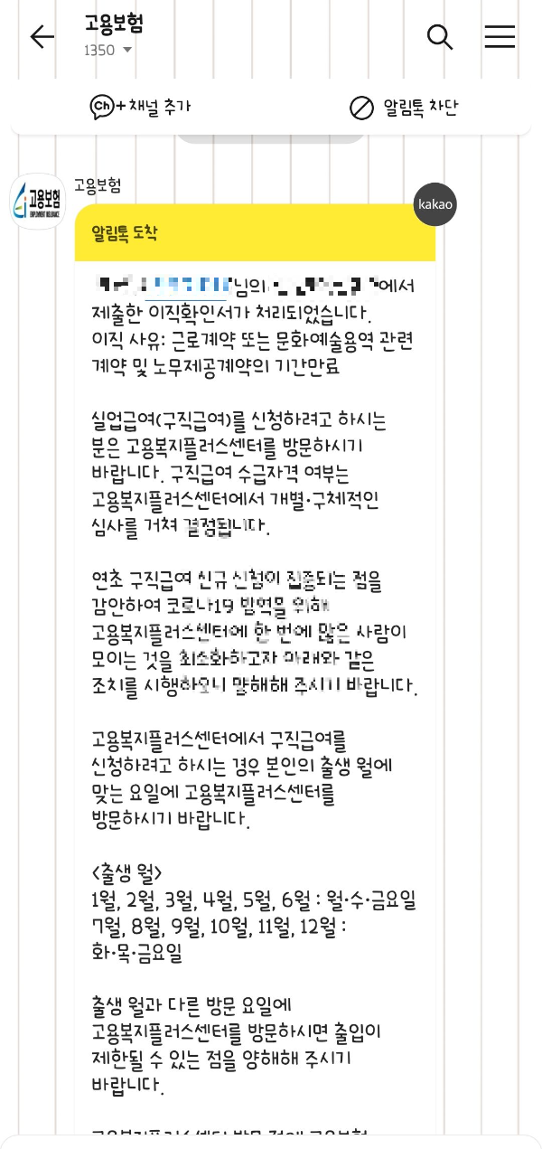 이직확인이 되면 이렇게 카톡으로 연락이 옵니다. (이때까지 그냥 마음 편히 기다리세요:))