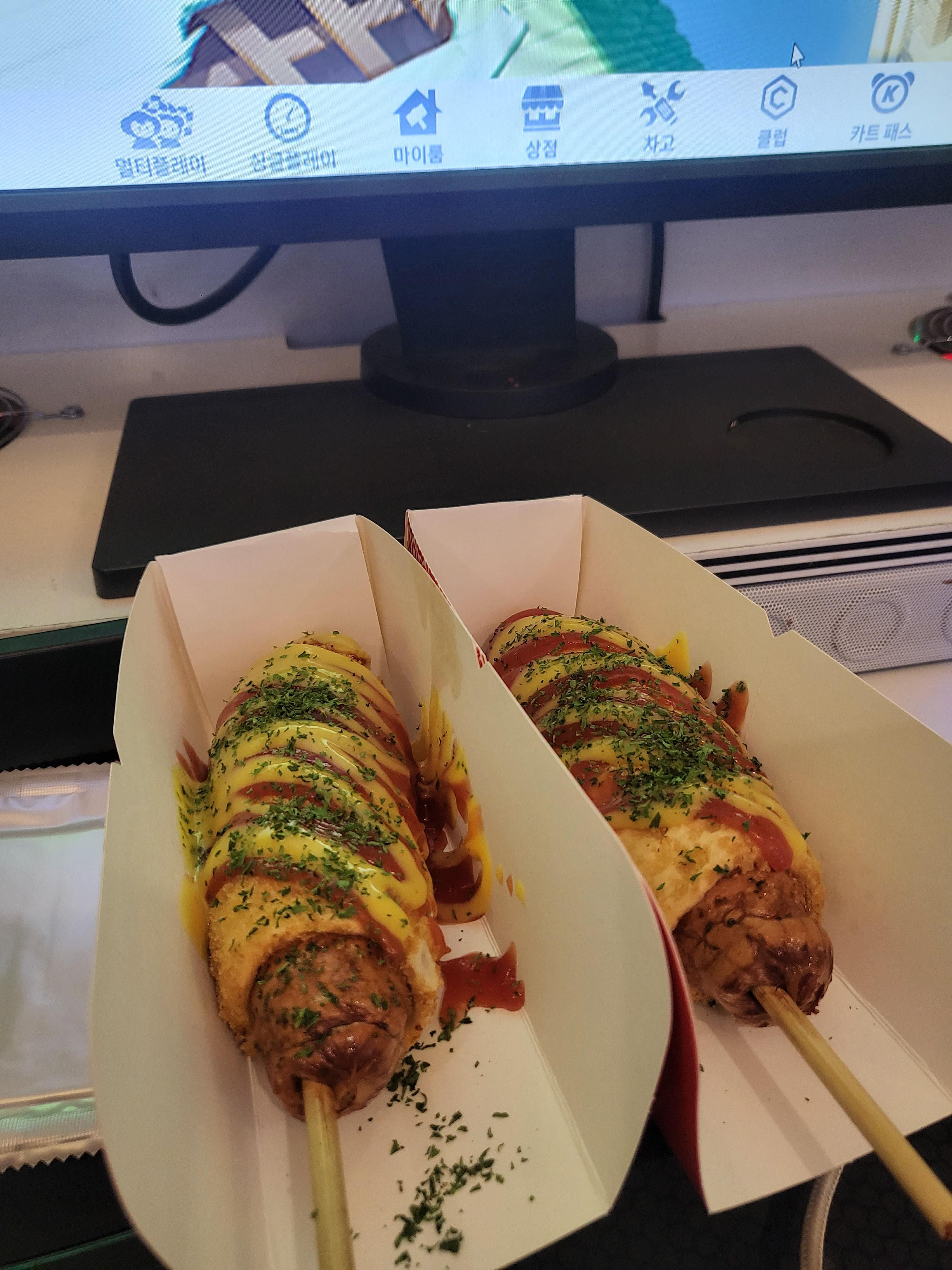 치즈 핫도그는 품절이어서 콘도그 먹었는데 후회 1도 없습니다. 너무 맛있었고 간단히 먹기 좋았어요.