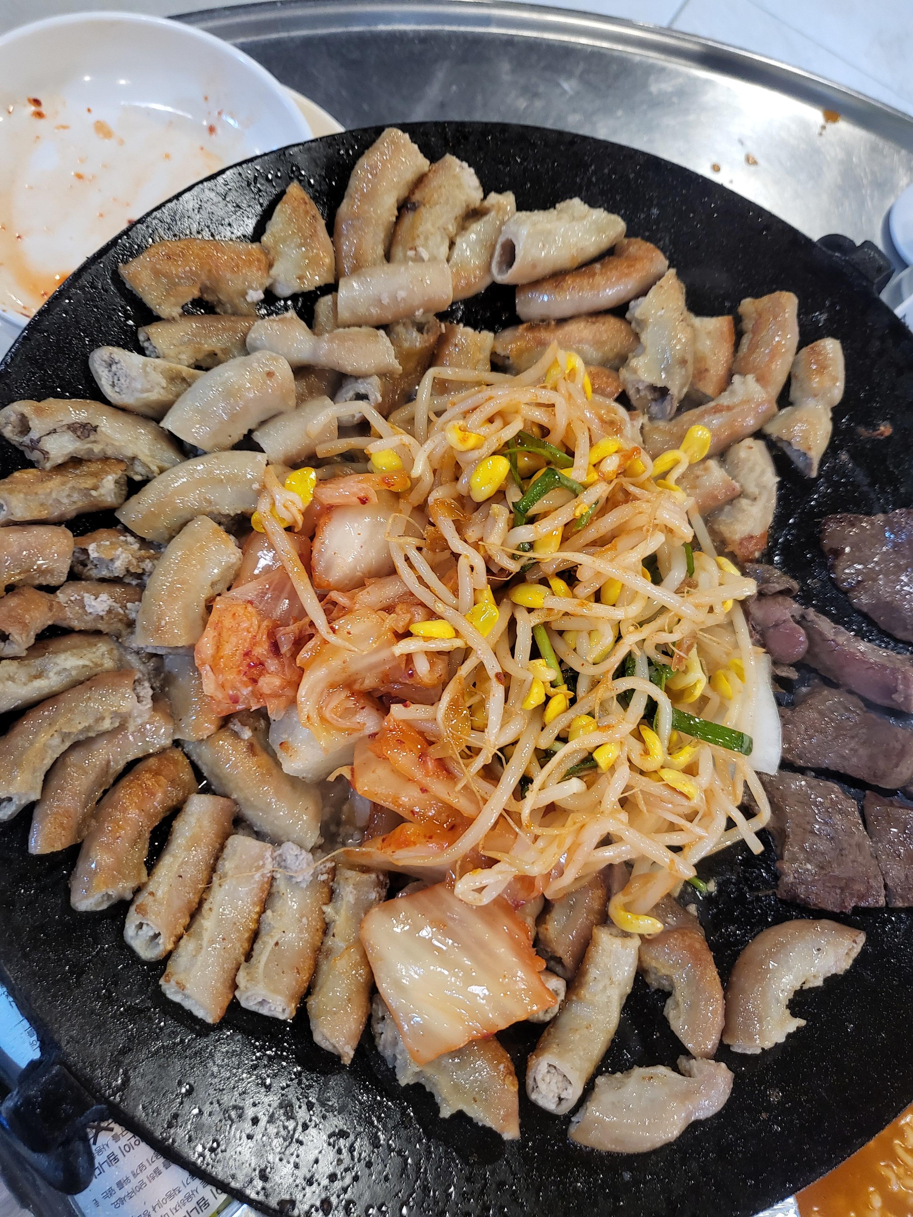 곱창과 익은 콩나물, 김치와 한 입 하면 감탄사가 절로 나와요.. 다시 보니 또 먹고 싶은 맛!
