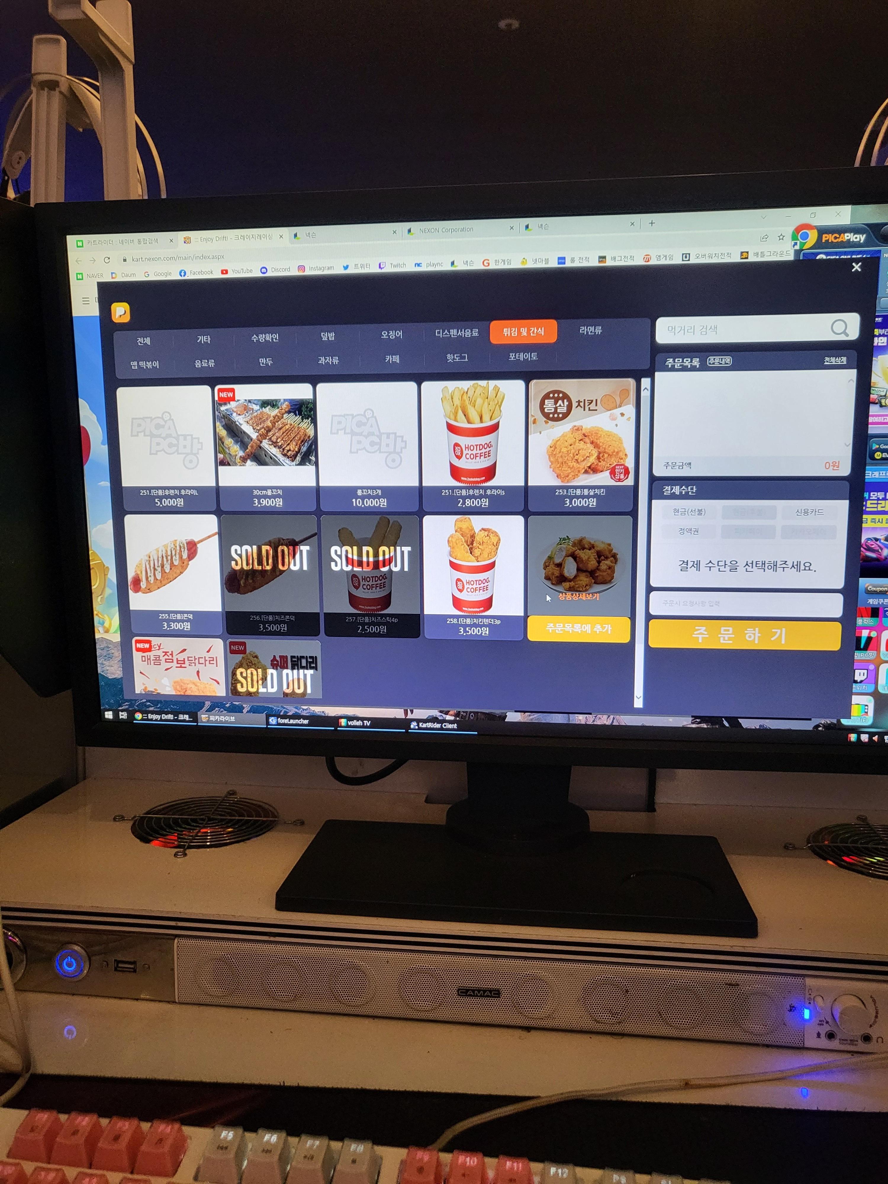 요즘 PC방 너무 좋아요,, 먹을 것 진짜 많고 볶음밥, 핫도그, 라면, 치킨, 감자튀김 등등
