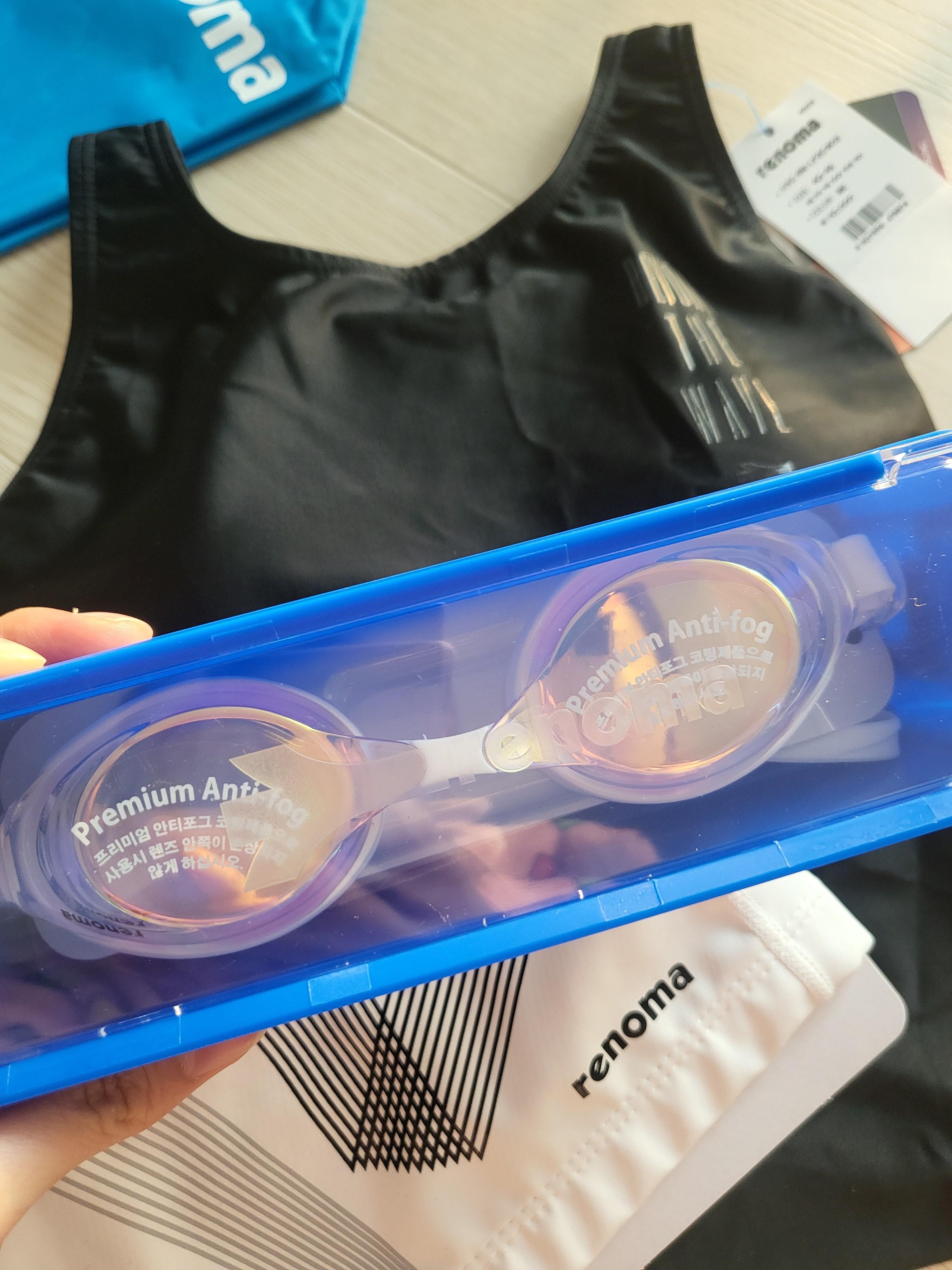 수영장에서 수모는 화이트가 예쁘다고 하더라고요. 더 눈에도 잘 띄고요. 그리고 수경같은 경우는 약간 반짝이는 코팅으로 되어있어서 조금 비싼 편인데, 반사되는 코팅 기술로 제 눈이 다른 사람에게 잘 보이지 않는다고 해요.
