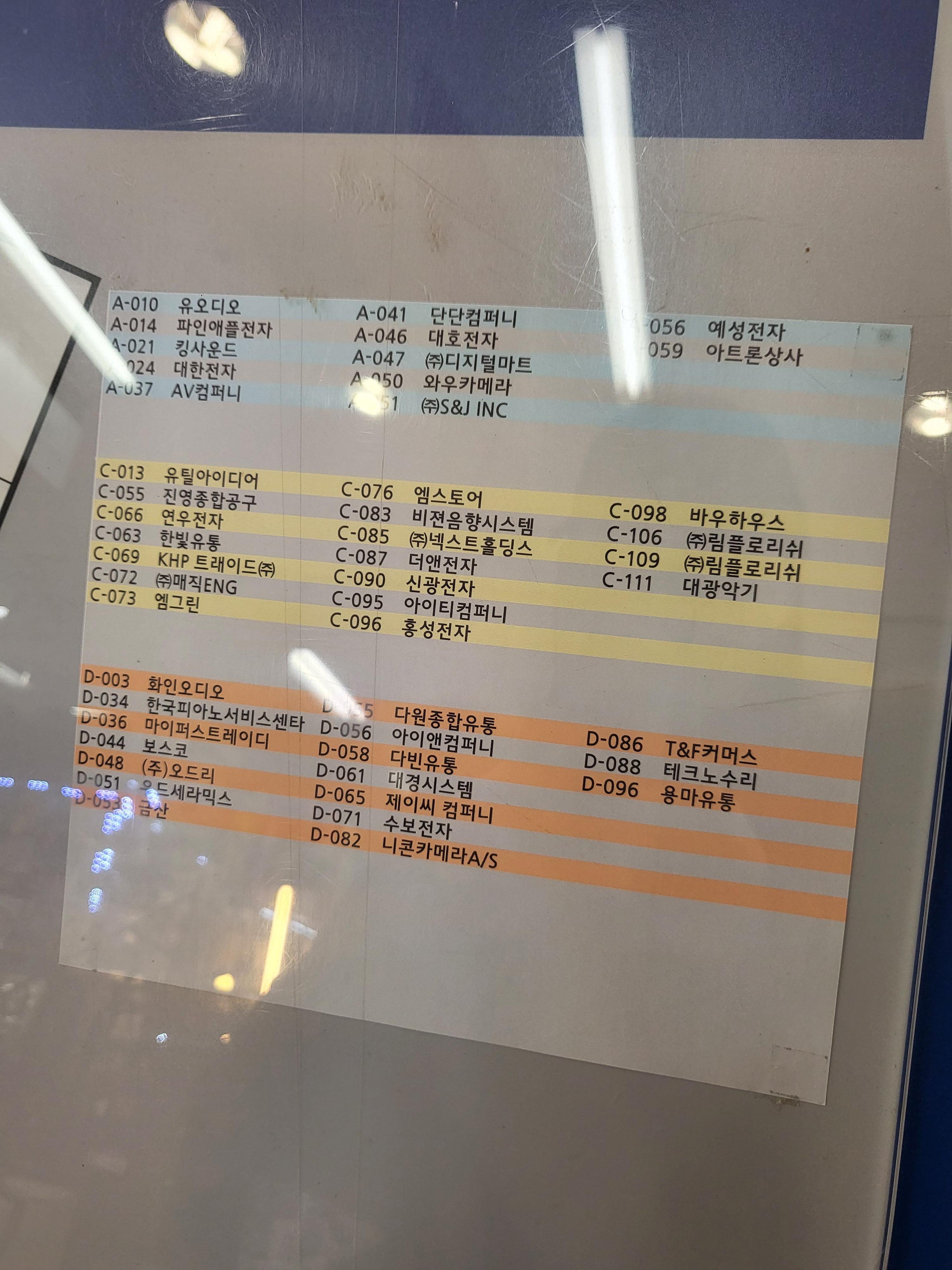 주차 후, 안내도를 살펴보았는데 스피커 뿐만 아니라, 카메라 및 오디오 등등 수리하는 곳들도 많았어요.