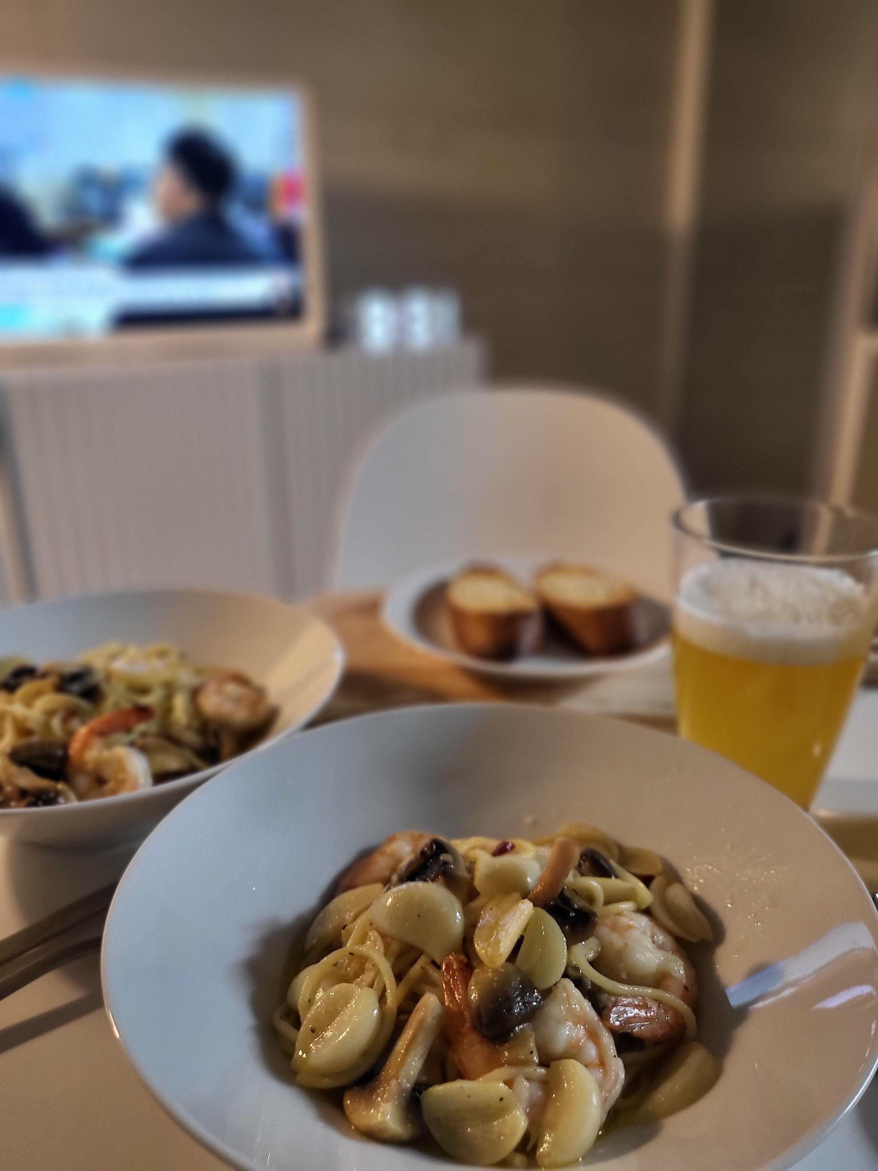 자취하는 친구가 해준 새우오일파스타와 바게뜨!
